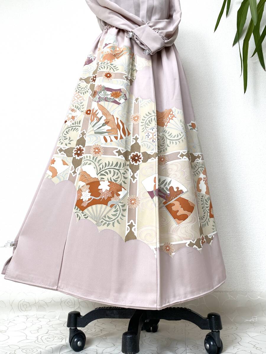大人可愛いセレブ着物スカートフリーサイズ着物リメイクウエストゴムロングスカートフリーサイズ送料込みハンドメイドスカートNO.5127