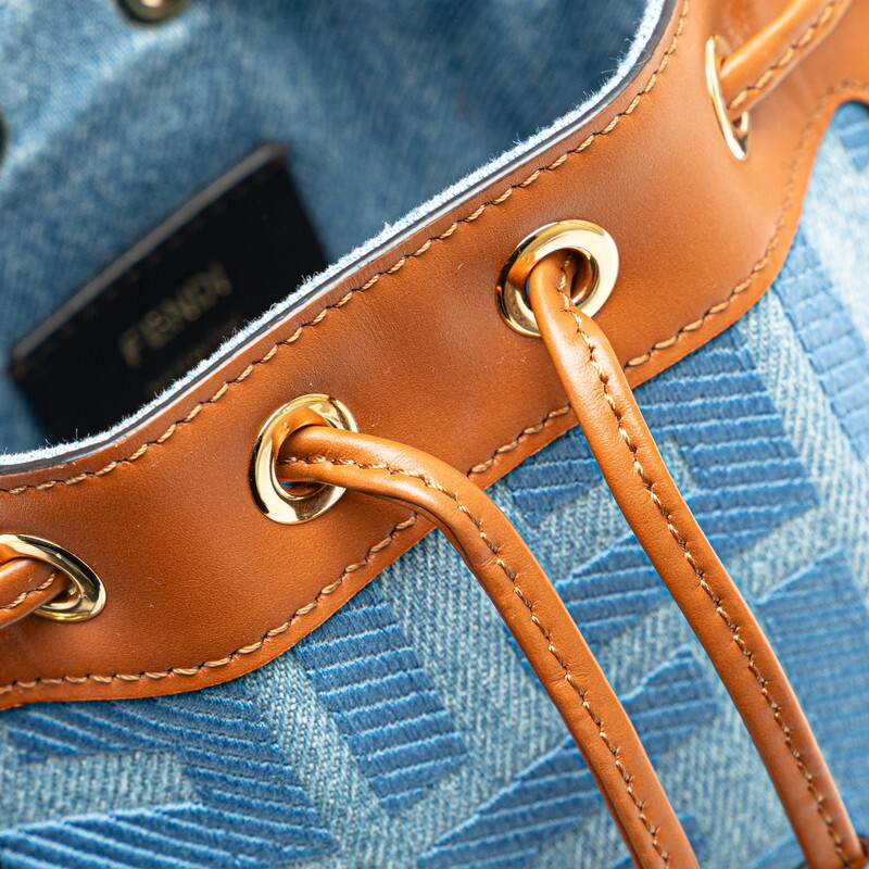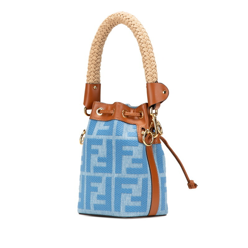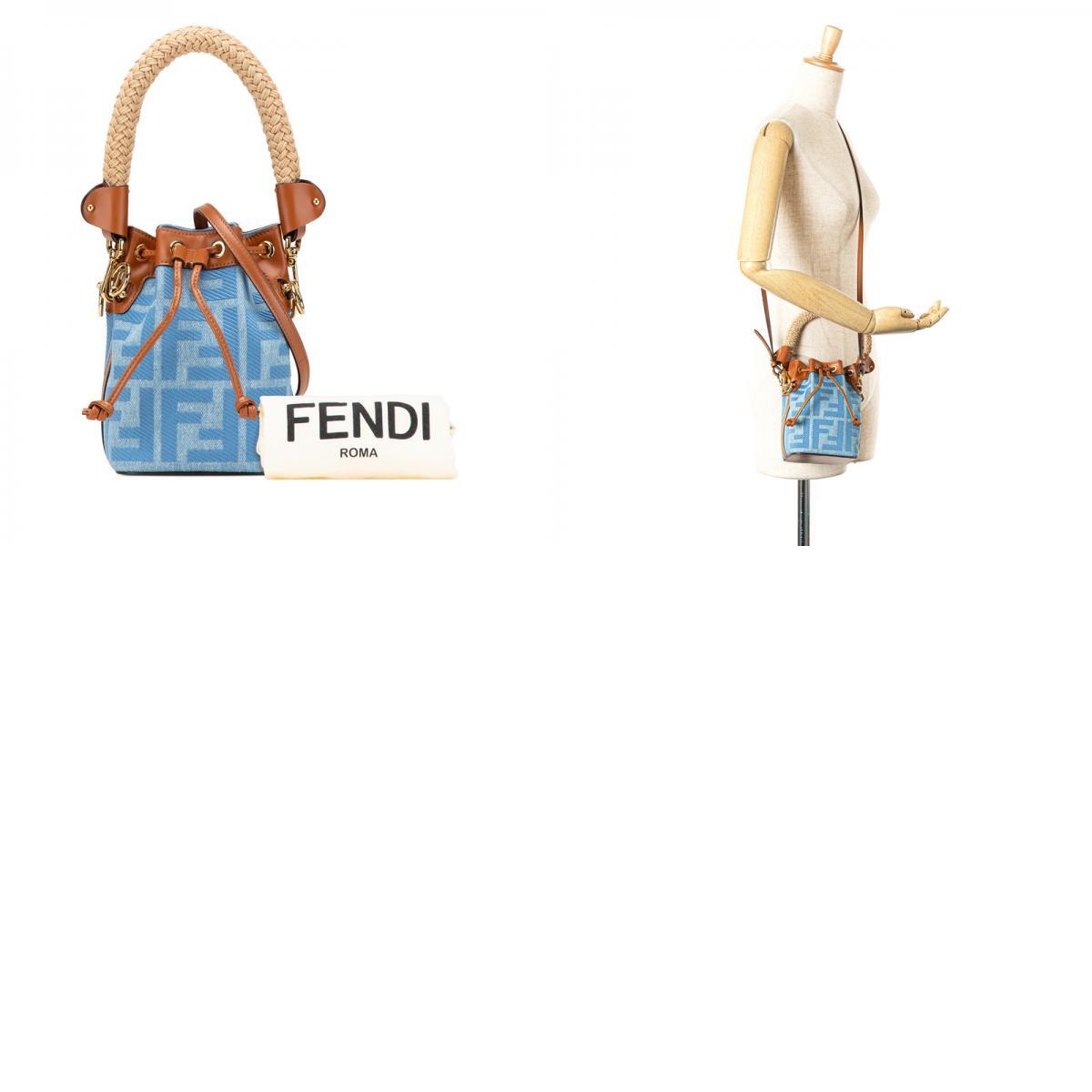 フェンディ ズッカ ミニ モントレゾール ハンドバッグ ショルダーバッグ 2WAY 8BS010 ライトブルー ブラウン デニム FENDI 【中古】