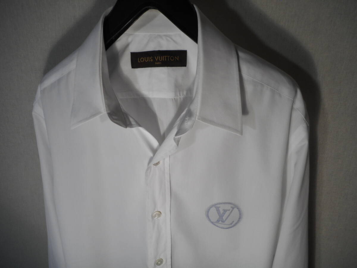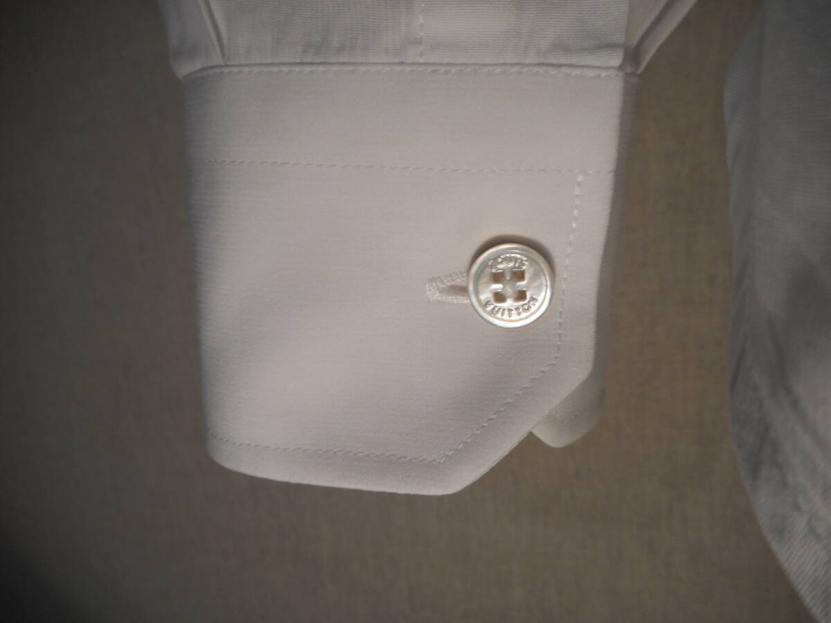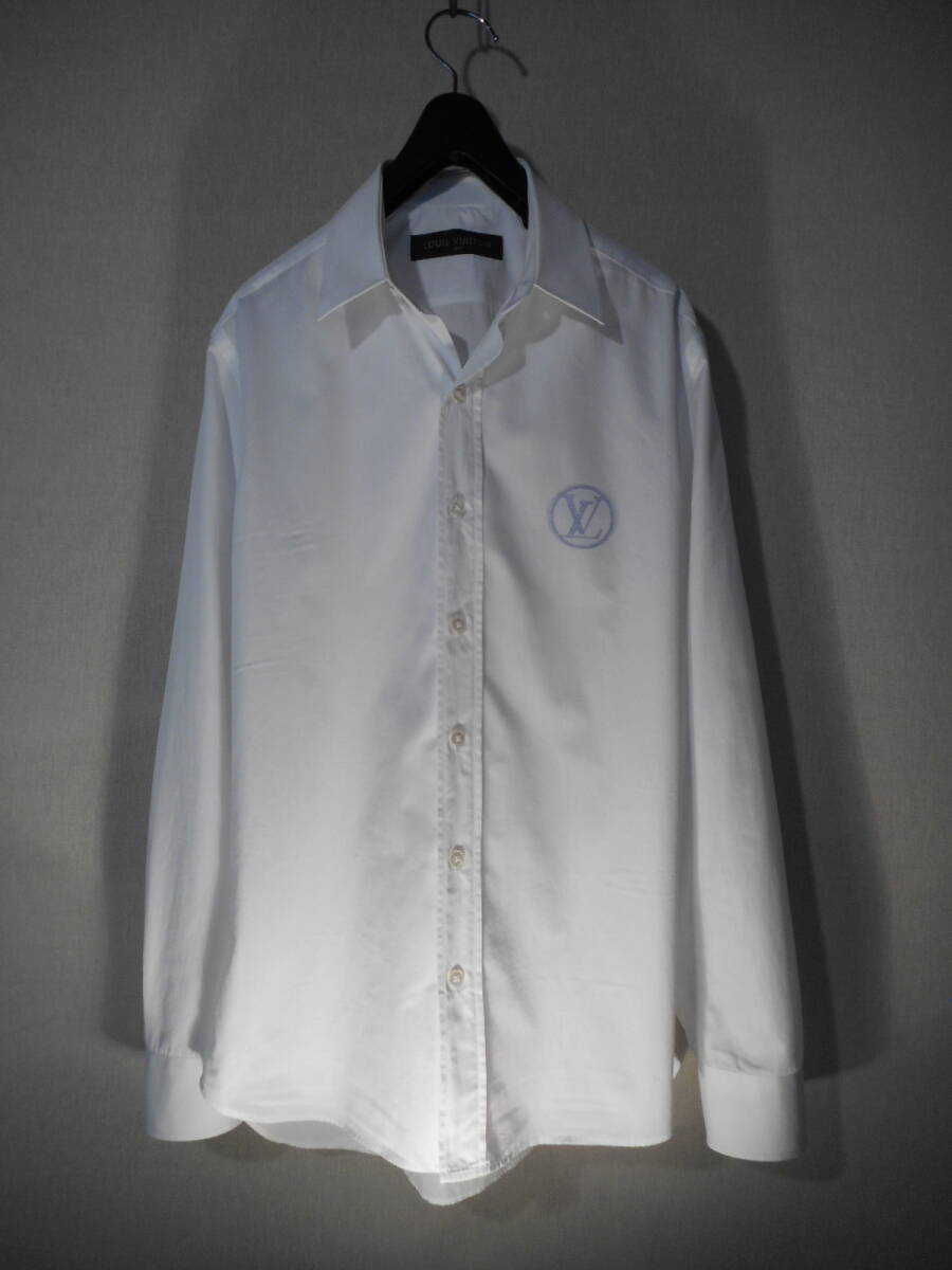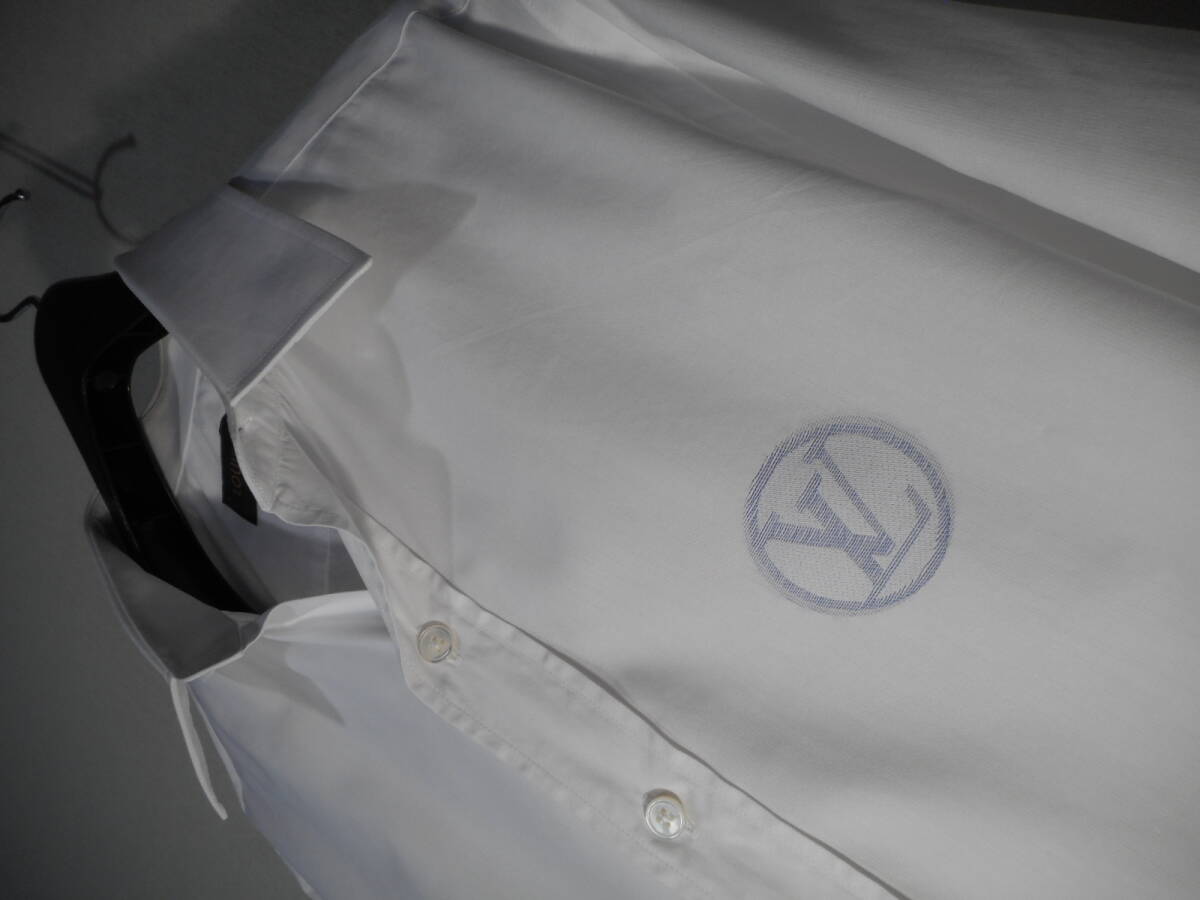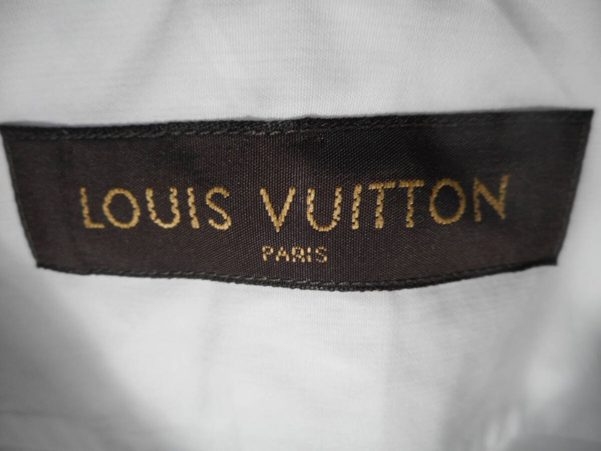 詳細:『LOUISVUITTON★ルイヴィトン』【特大LV織り】デザイナーズシャツです。 華やかなファッション界において絶大な人気を誇るブランド、先進性あるデザインと高いクオリティから繰り出される作品の数々に多くの方が好まれておりますのでご承知かと思います。 こちらはルイヴィトンの華麗な世界観を表現した作品、上品でいながらに洗練された雰囲気を誘うテクニック、それに加えてヴィトンそのものを組み込む抜群の感性が見事。 メインデザインとしてとても扱いやすく着こなしがしやすいホワイトシャツを軸にしております、胸のデザインが最大のポイントで、画像の様にかなり大きめに【 LV 】の織り込みデザインを施しており存在感抜群、ネイビーカラーを用いているのでMENSに好まれるカラーバランスなのも好感が持てます、襟はすっきりとした形状、フロント開閉は表前立てを採用、アーム先端は角落としのシングルボタンで手首元を冴えた感じに、ボタンは刻印ボタン、シルエットはボディーラインに程よく添わせるスタイル綺麗な扱い、コーディネイトも万能でシャツ単体での活用からジャケット、カーディガン、ブルゾン、などどんなスタイルにもすんなり合わせれるので便利です、製品は今では珍しいフランス製、ヴィトンジャパン、状態は洗濯済みで清潔綺麗、特に気になるような大きい汚れ、破れ、やけなどはなく綺麗なお品物です。 なかなか出てこないアイテムだと思いますので、この機会にヴィトンの香りを着こなしの中に取り入れ淡く爽やかなセンスを備えられてはいかがでしょうか?
