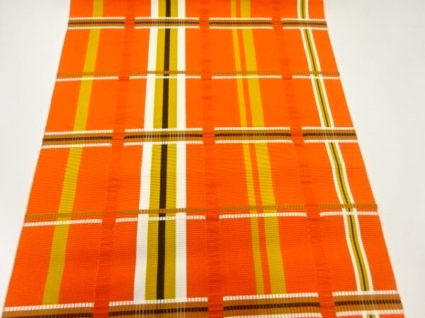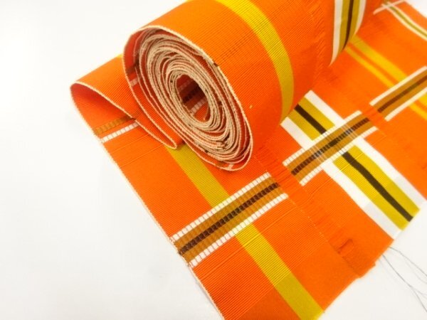 ys7377760; 変わり格子模様織出し八寸帯地反物【アンティーク】【着】