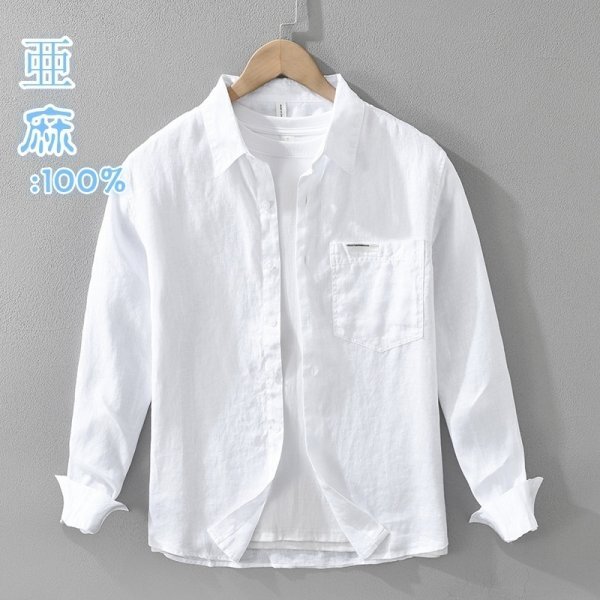 新品★未使用 リネンシャツ 亜麻100% アロハシャツ 長袖シャツ メンズ シャツ トレンド トップス【M7627】白 2XL