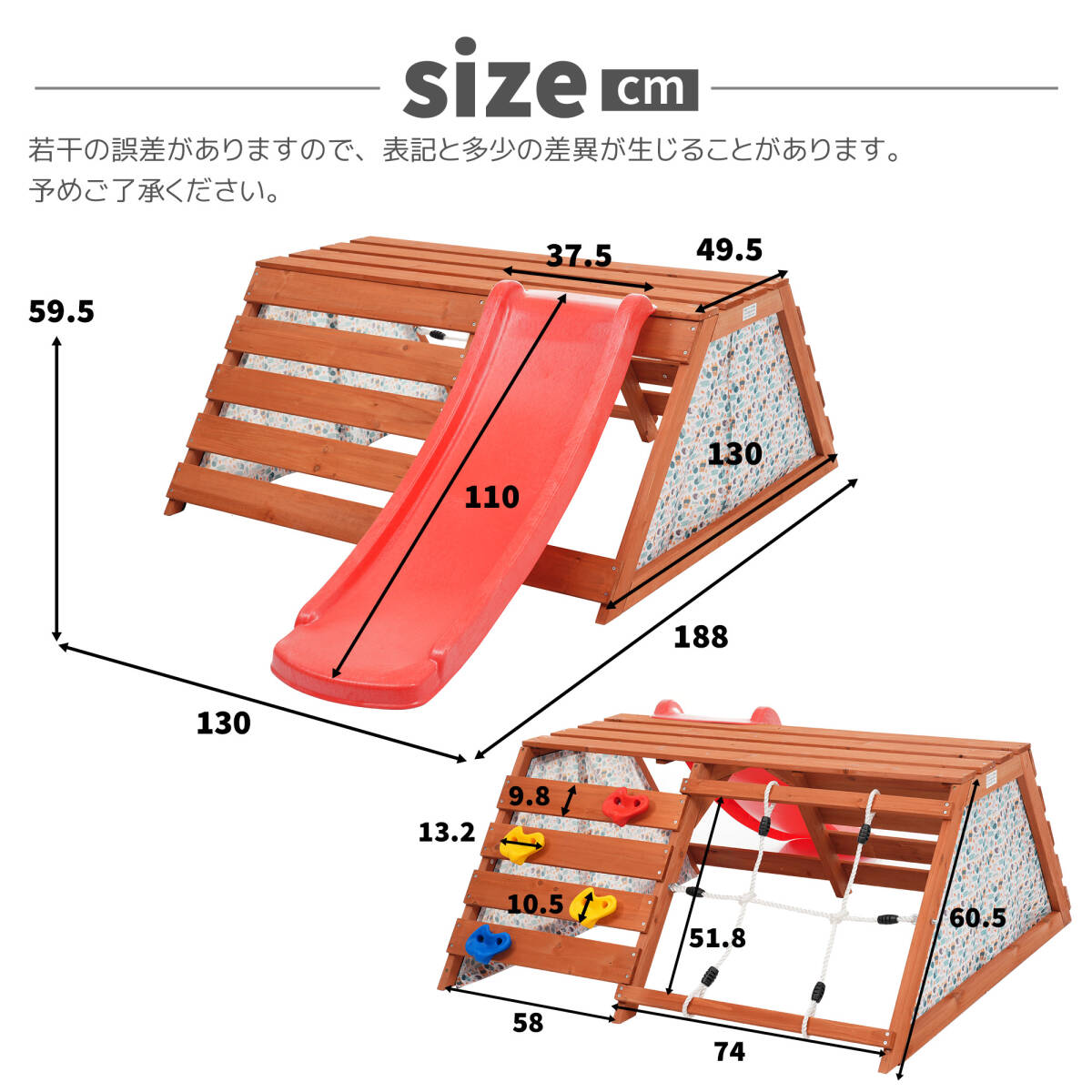 大型遊具 屋外遊具 ジャングルジム 滑り台 室外内 木製 天然木 耐荷重100KG 室内ジム 遊具 スギ材 すべり台 家庭用 【レッドブラウン】