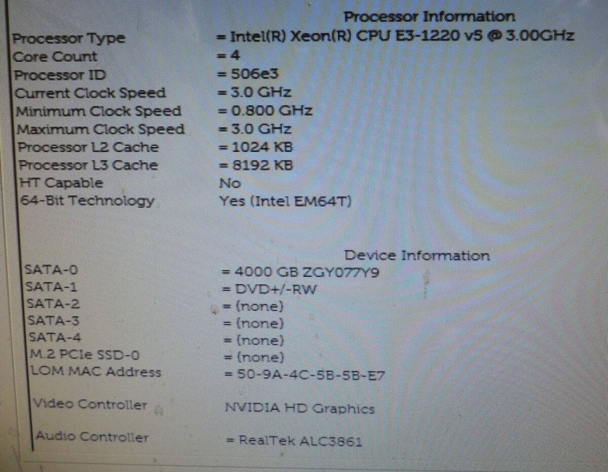 | DELL D13Mから外しマザーボード CPU Xeon(R) E3-1220 v5 3.00GHz メモリ PC4 4GB 中古 | |