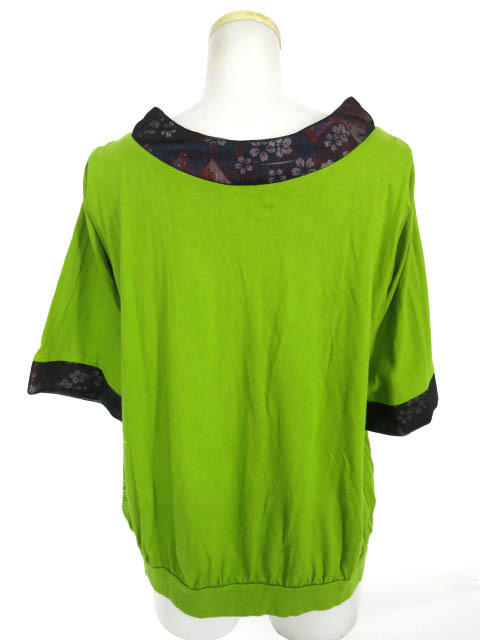 商品説明 gouk 和柄スクエアネックカットソー 和柄切替部分にシフォン生地を重ねた、和花プリント入り半袖スクエアネックカットソーです。 生地の毛羽立ちが見られ着用感が感じられます。 ●状態 やや使用感はありますが、目立ったダメージや汚れが無く、比較的状態の良好なお品です。(中古品となりますので気にならない程度の細かな傷汚れ等が見られる場合がございます) ●サイズ 実寸:肩幅38 身幅44 肩からの着丈58 袖丈32(cm) ※多少の誤差はご了承ください。 素材:本体A綿100% 本体B綿100% 本体Cポリエステル100% 色:緑×紫 発送方法 ●ヤマト運輸 元払い全国一律600円 (沖縄は1600円になります。) ●同梱【まとめて取引】について 同梱ご希望の方は【取引をはじめる】の前に、必ず【まとめて取引をはじめる】ボタンを押して下さい。 【☆何点買っても600円☆】複数落札時の同梱も可能です。 * 最初の落札から72時間以内に落札した商品のみ【まとめて取引】がご利用できます。 * 評価6未満の方は【まとめて取引】機能が利用できませんので単品ごとのお取引になります。 ●土曜、日曜、祝日は業務をお休みさせていただきます。 (年末年始・GW・お盆などの大型連休期間もお休みとさせていただきます) お問合せのご返信や発送等は平日48時間以内にご対応させていただきます。 その他 ●付属品等につきましては画像に写っているものが全てとなります。 ●中古品に関しましては目立つダメージ・汚れのみの掲載になります。軽微な傷汚れ等の掲載漏れはご容赦ください。 ●値引きや早期終了の交渉はお受けいたしておりません。 ●落札者様都合による返品はお受けいたしかねます。(試着して似合わなかった、画像と実物でイメージが違った、色味が違うなど) ご不明な点などがございましたら質問欄よりお気軽にお問い合わせください。 |