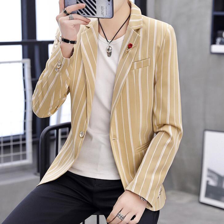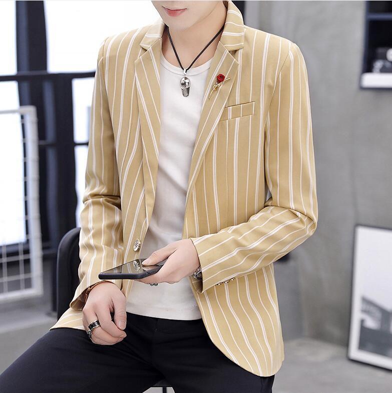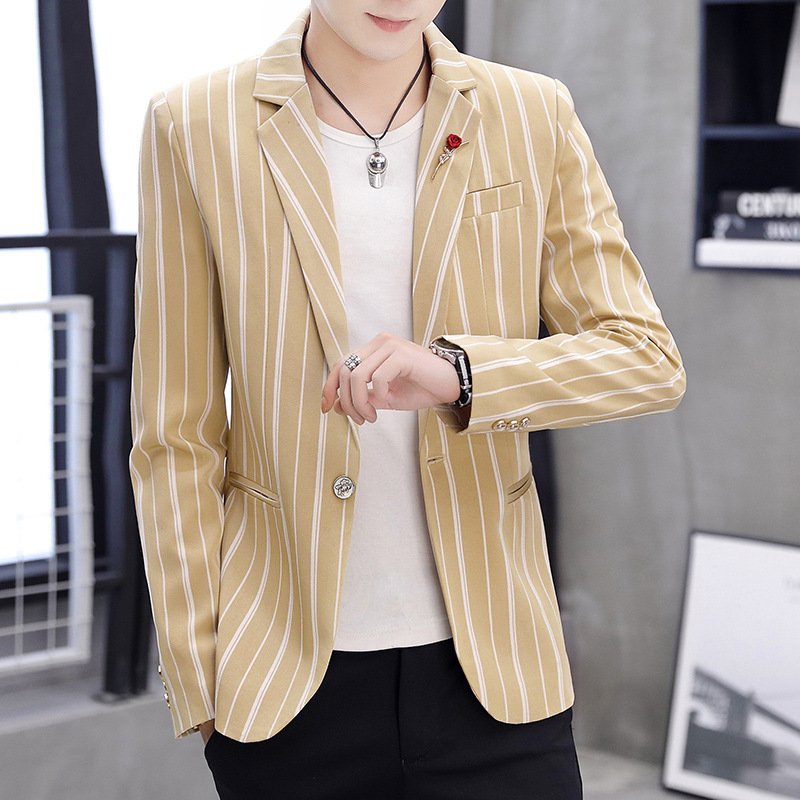 新入荷上質メンズ テーラードジャケット ビジネスジャケット 春夏秋 カジュアル ブレザー ストライブ柄 通勤コート紳士フォーマル カーキ M
