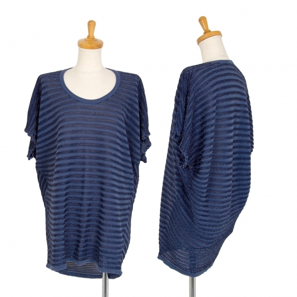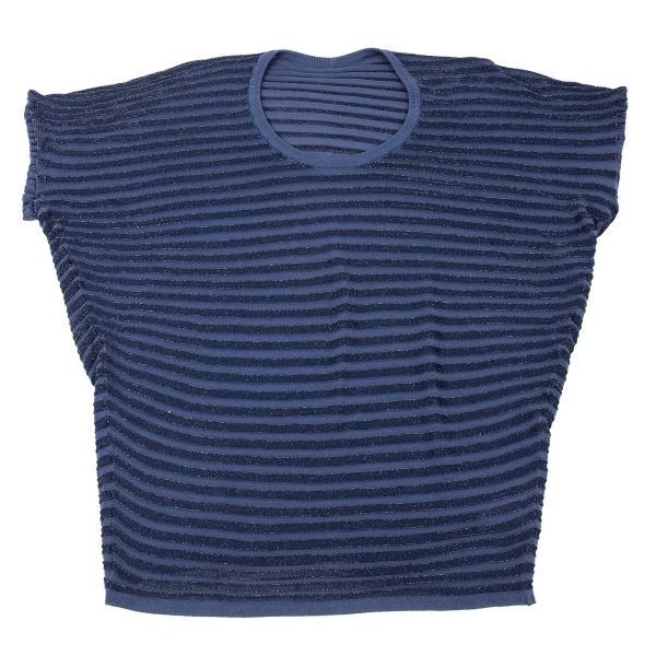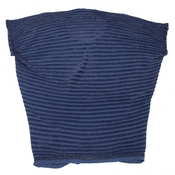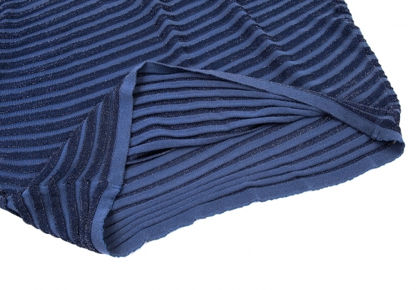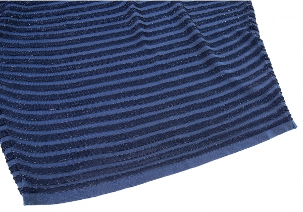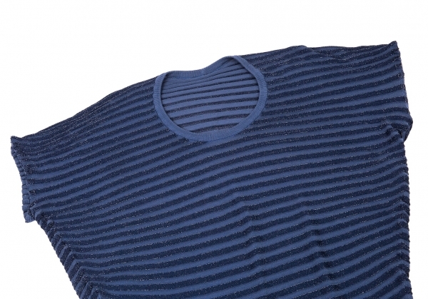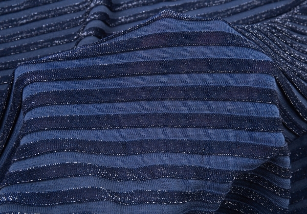 | プリーツプリーズPLEATS PLEASE ボーダー織りラメニットチュニック 紺3 |