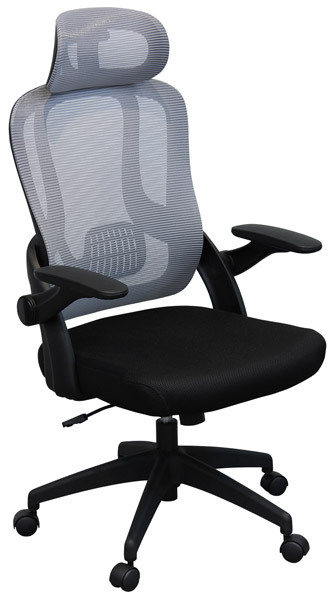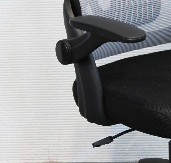 デスクチェア メッシュ張り跳ね上げ肘掛け付きオフィスチェアー グレー色 回転椅子 NC-40スタイリッシュなデザインの回転式アームチェアです。ガス圧でワンタッチ昇降。可動式ヘッドレストとランバーサポート付きです。体重を掛けてレバーを操作すると座面が下がり、腰を浮かしながらレバーを操作すると座面が上がります。座面は大柄の人でも余裕のゆったり設計。長時間作業が快適な背もたれカーブで体圧を分散し、ランバーサポートが腰や肩の疲れを軽減してくれます。コンパクトな跳ね上げアームなので、デスクにすっきり収まり無駄なスペースは不要です。通気性抜群の爽やかなメッシュ張り。◇サイズ:幅63×奥行61×高さ113~121×座面高42~52センチ◇主材:スチール、ナイロン樹脂◇張地:ポリエステル◇座面:ウレタンフォーム◇キャスター付◇ロッキング機能◇回転式◇ガス圧昇降式◇組立式☆落札、ご入金確認後 1~2日にて発送いたします 追加納期のかかるものは商品ページに記載いたしております よろしくお願いいたします。