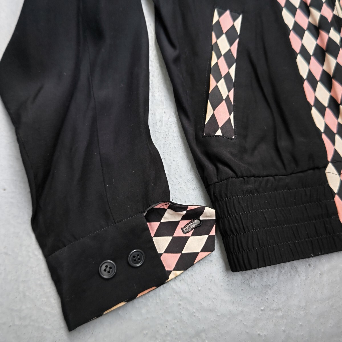 アーガイル柄のレーヨンのジャケットです。