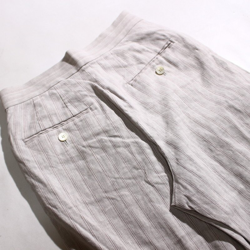 美品 イネド INED 株) フランドル 春 夏 刺繍 ストライプ 柄 ミセス コットン リネン サマー テーパードパンツ 7号 ホワイト 白 パンツ