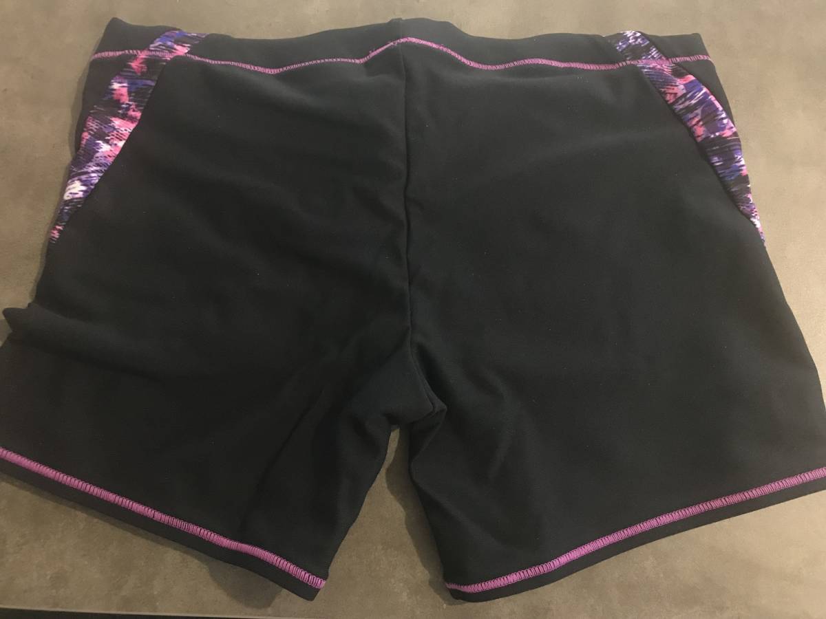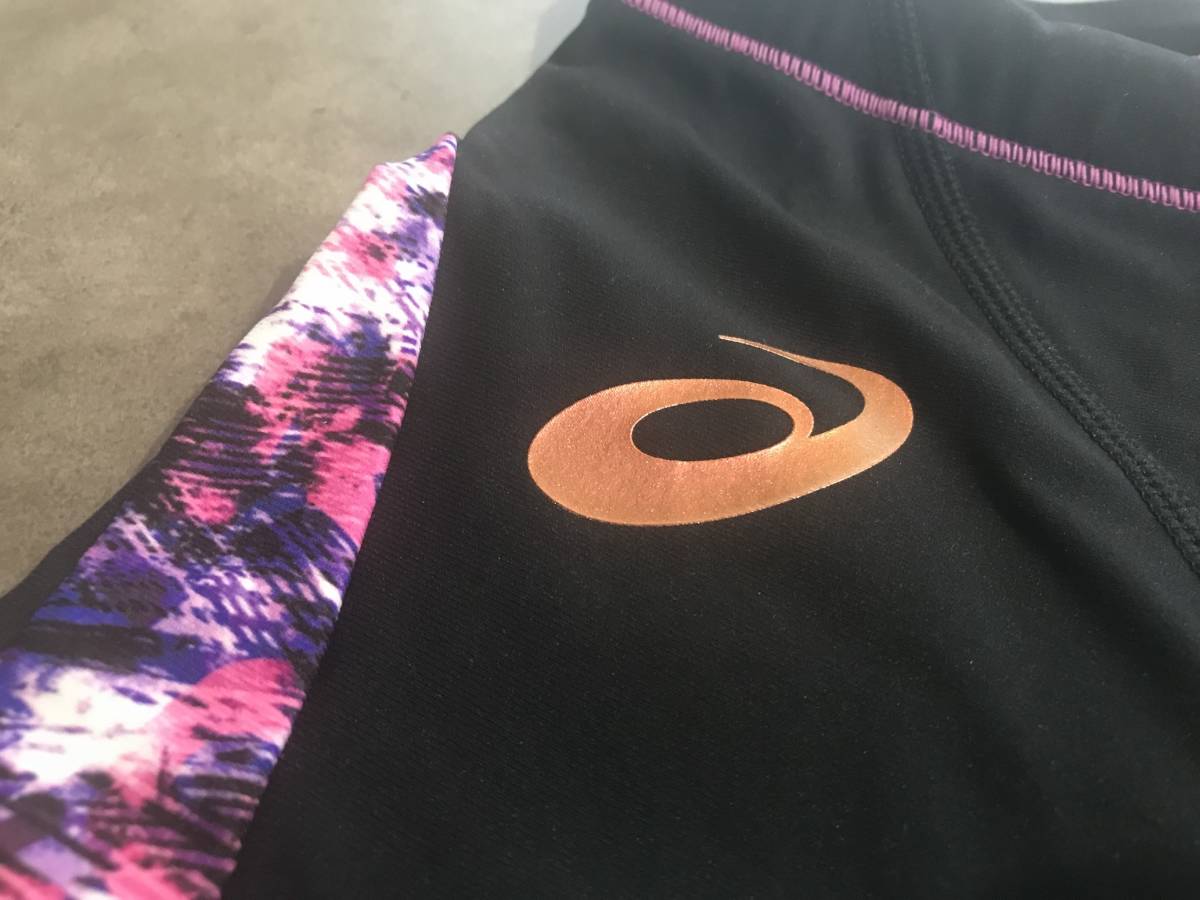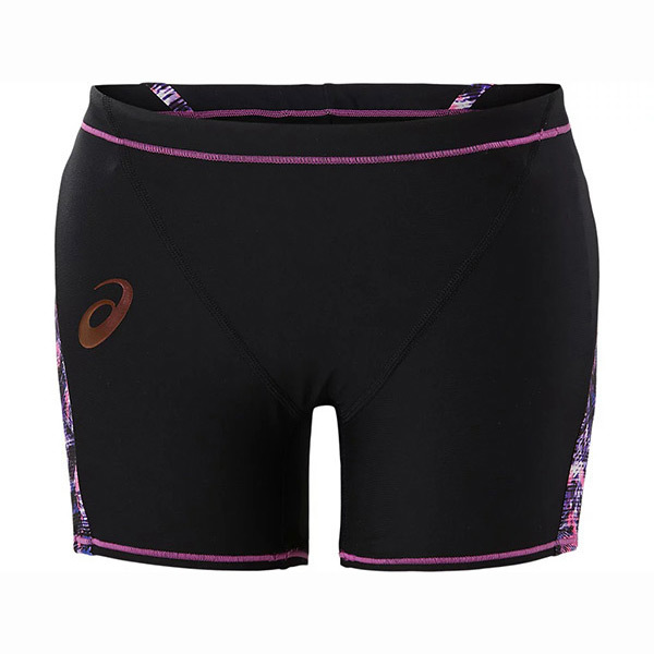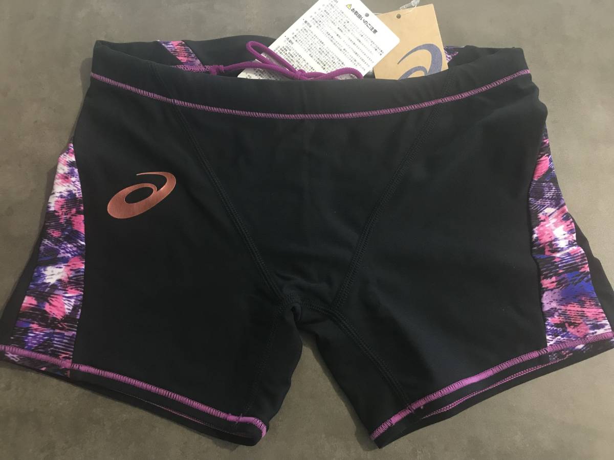 0605 ★ 新品 未使用 水着 asics アシックス ハーフボックス サイド柄 ブラック オーキッド 塩素に強く長持ち XSサイズ