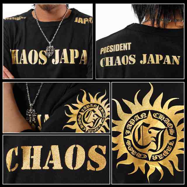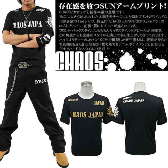 CHAOS JAPAN 新ゴプリント太陽タトゥープリTシャツ ch-ry-0010 メンズファッション品 ブラック×ゴールド M