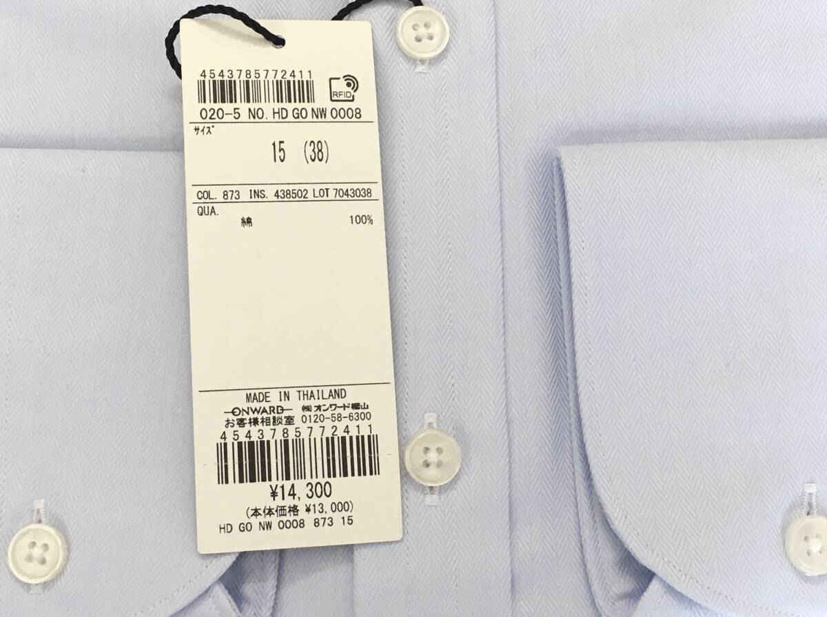 gotairiku 五大陸 PREMIUMPLEATS 長袖レギュラーシャツ 綿100% 38 M オンワード 定価14.300円