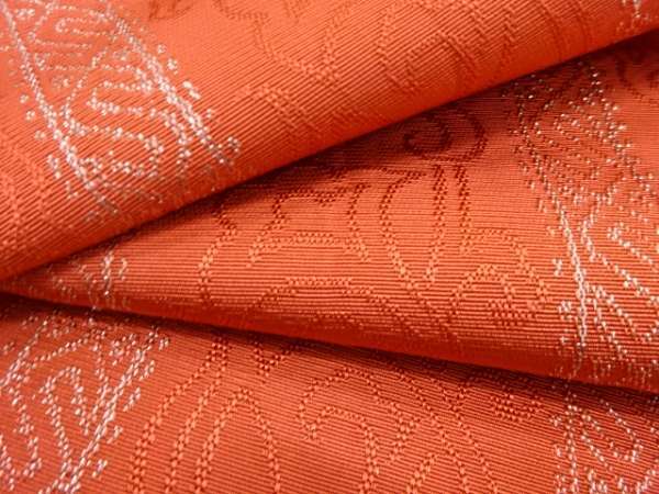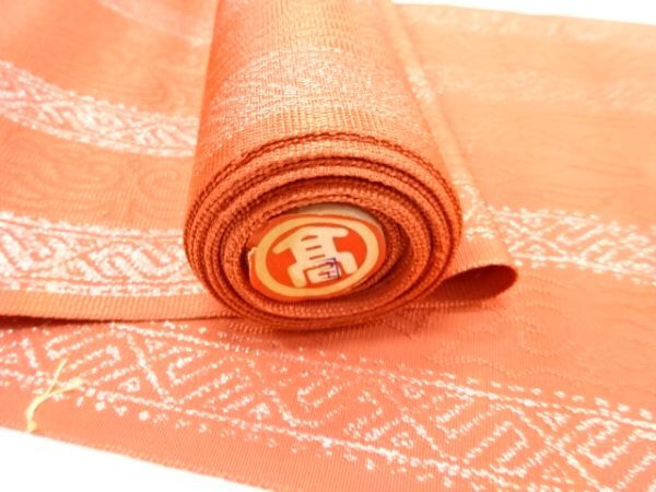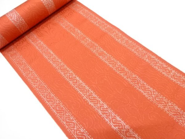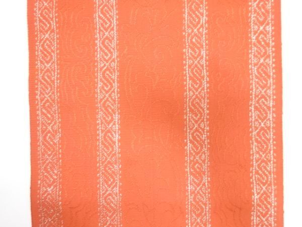 ys7373250; 縞に更紗模様織り出し 八寸帯地反物【アンティーク】【着】