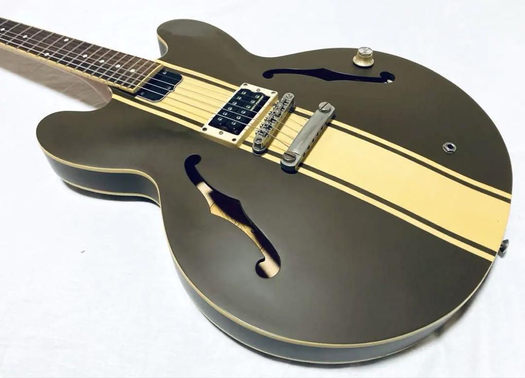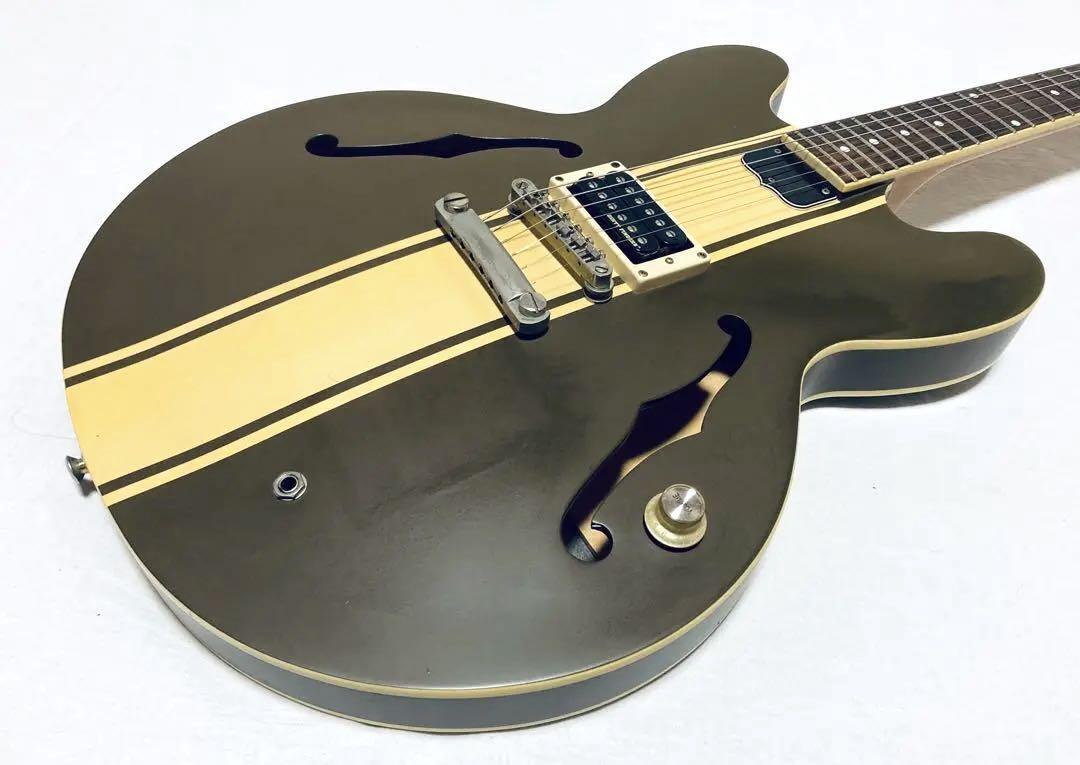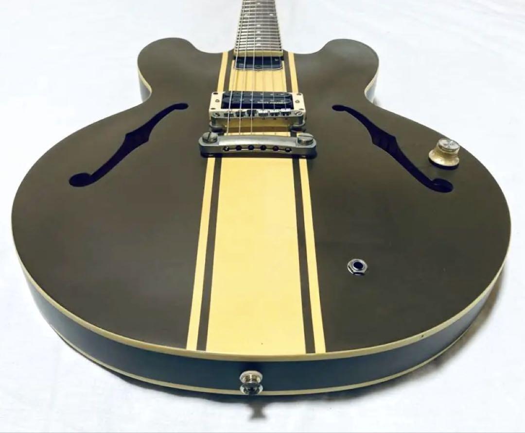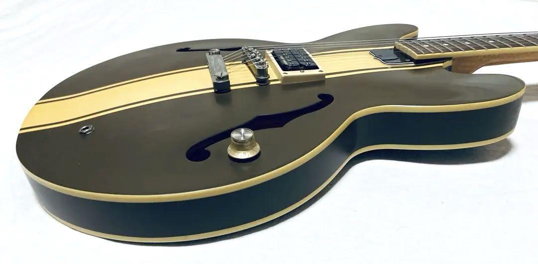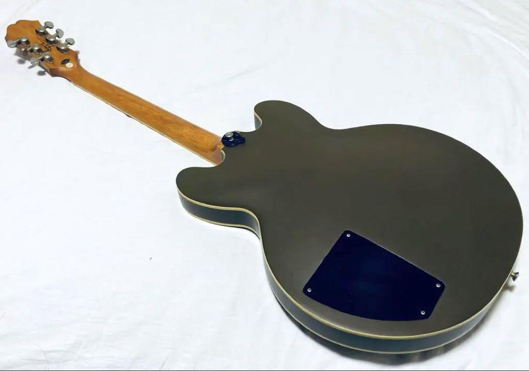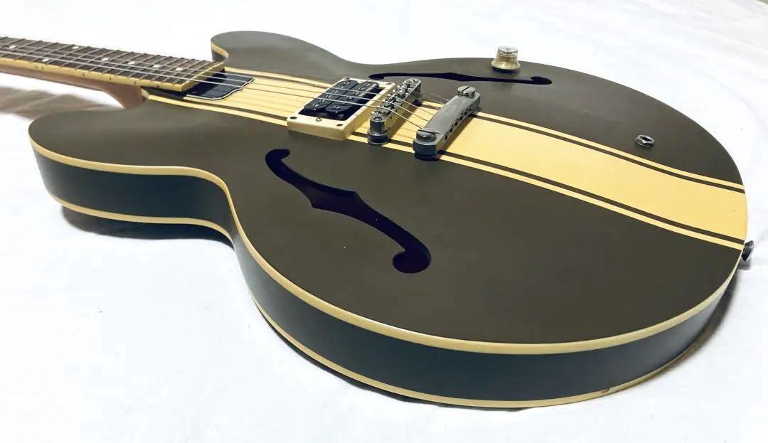 フロントピックアップが無い分か、よりアコースティックな鳴りが大きくよく鳴るセミアコです。