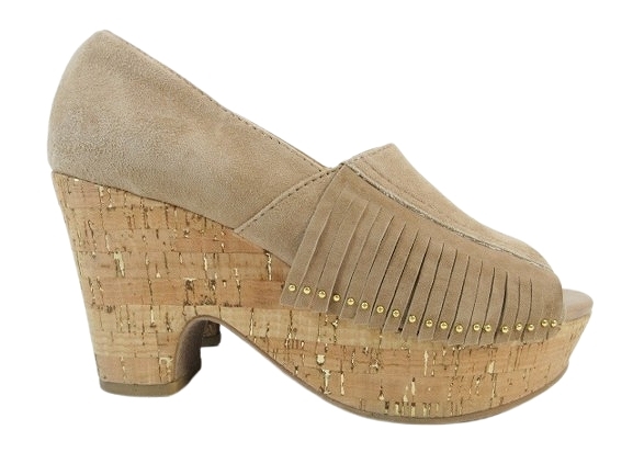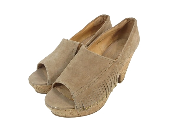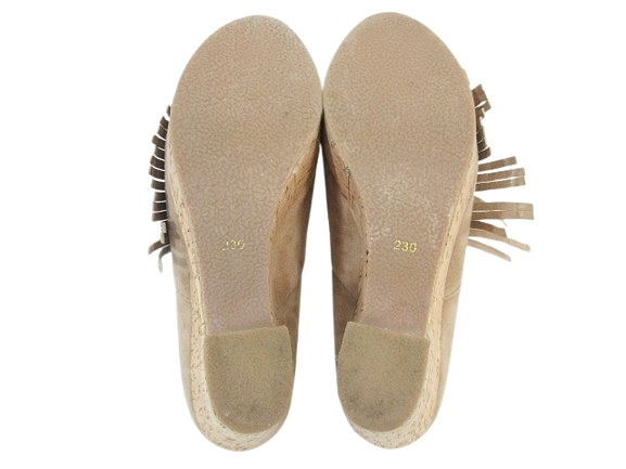 サヴァサヴァ CAVA CAVA サンダル ウェッジ ソール 厚底 ヒール フリンジ オープントゥ ブラウン系 サイズ23.0 QQQ レディース