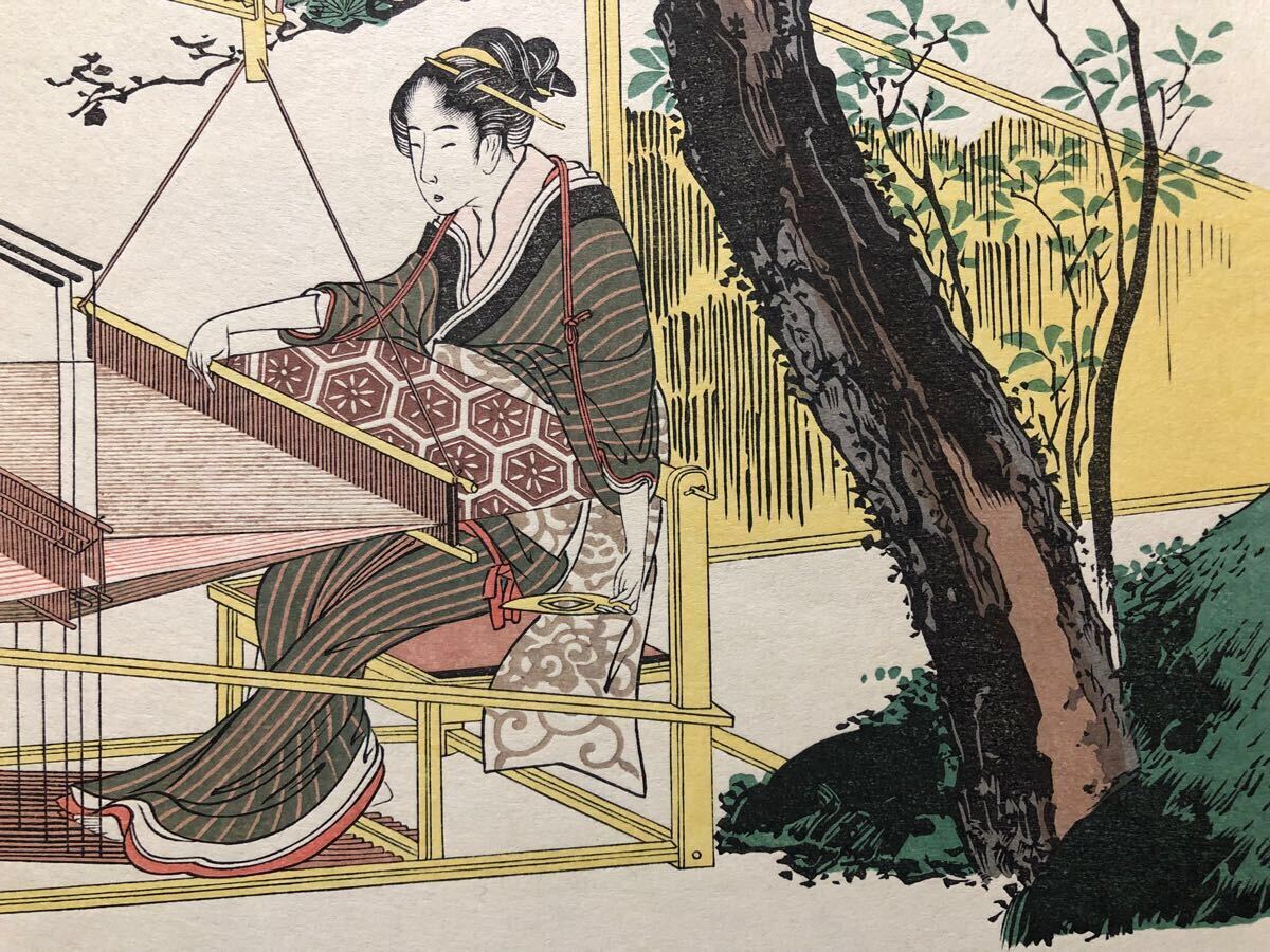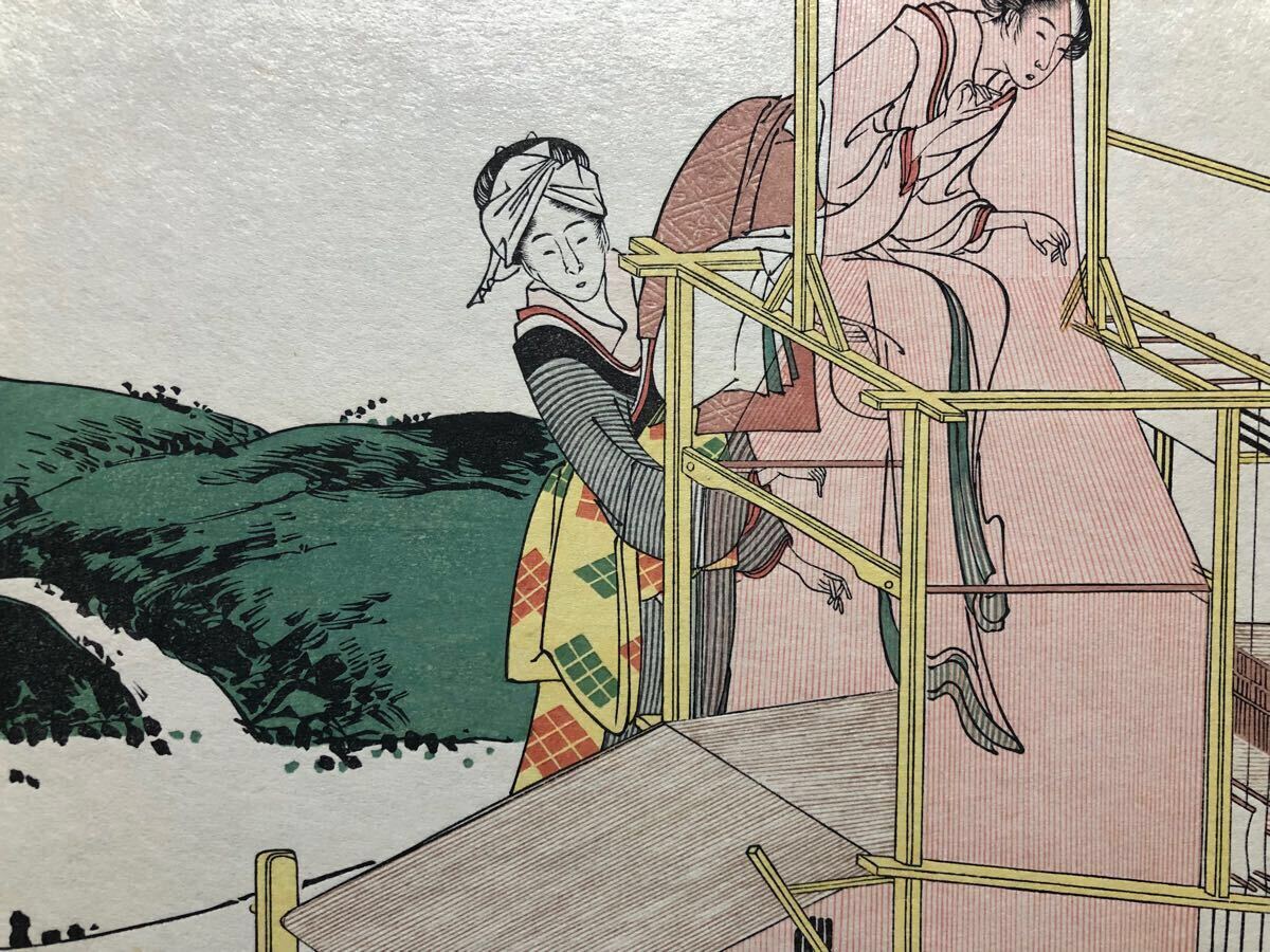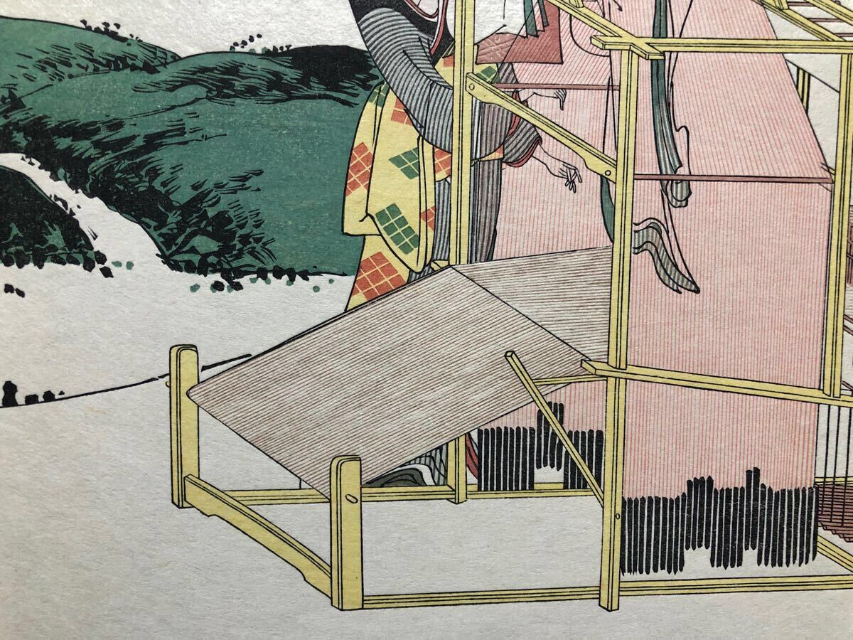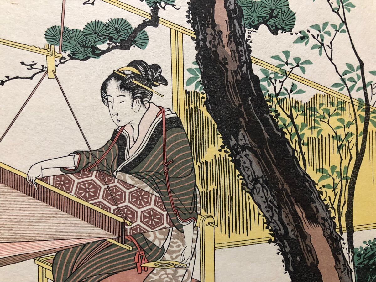 木版画 葛飾北斎【機織り】横大判 アダチ版画研究所 昭和期 復刻版 本物保証 ■ 浮世絵 錦絵 摺物 美人画 Hokusai Ukiyoe