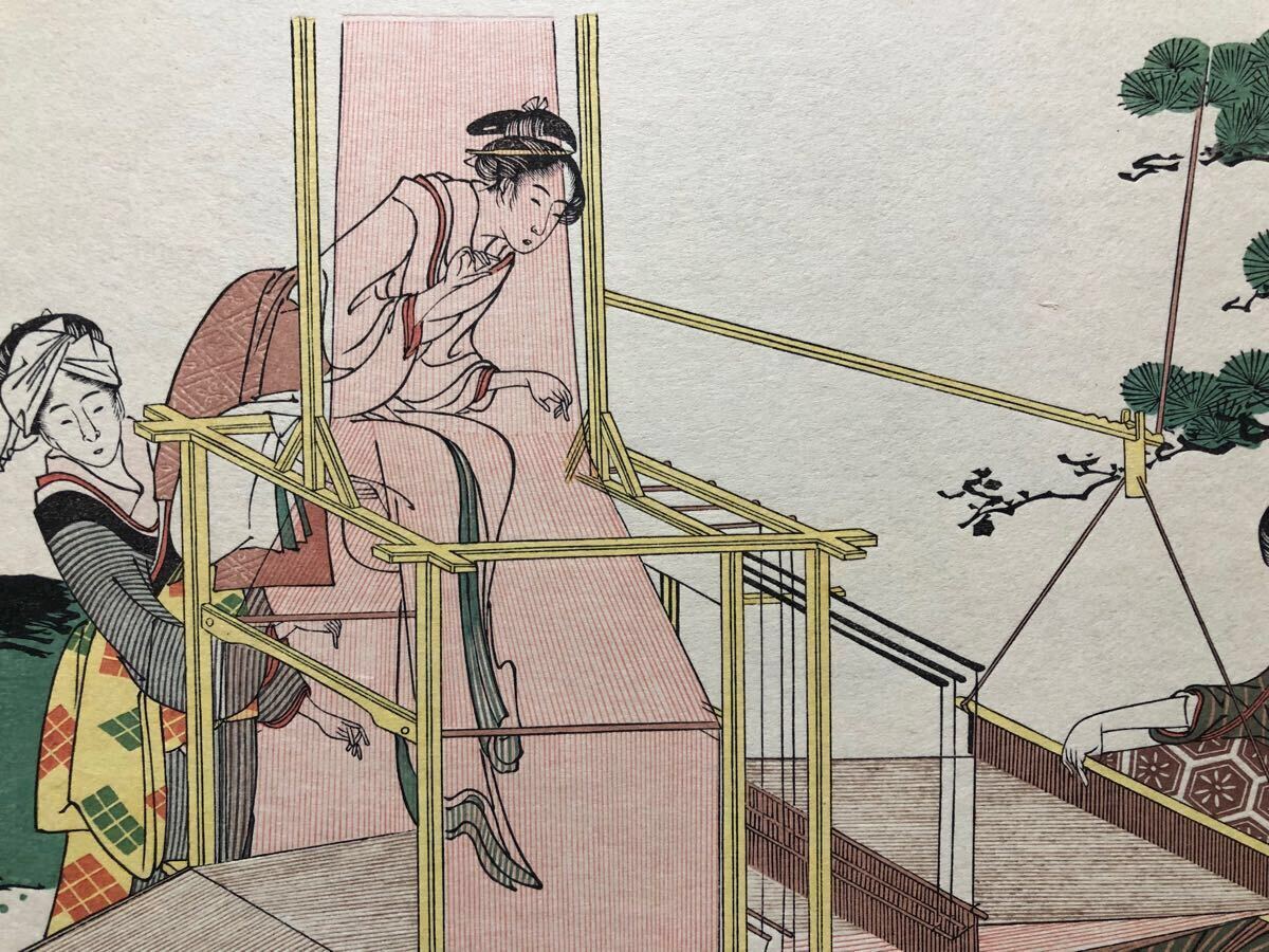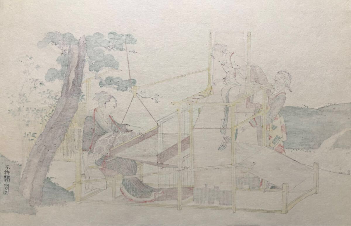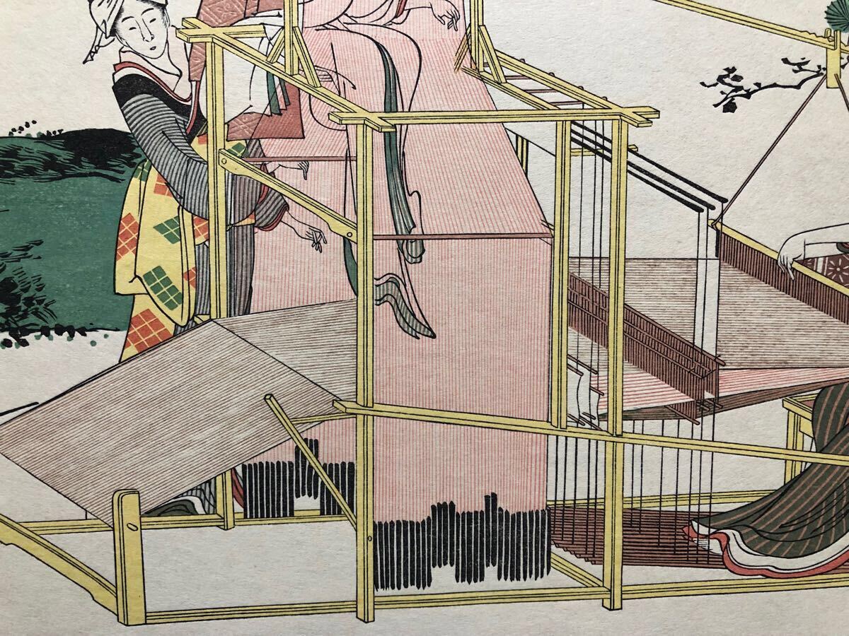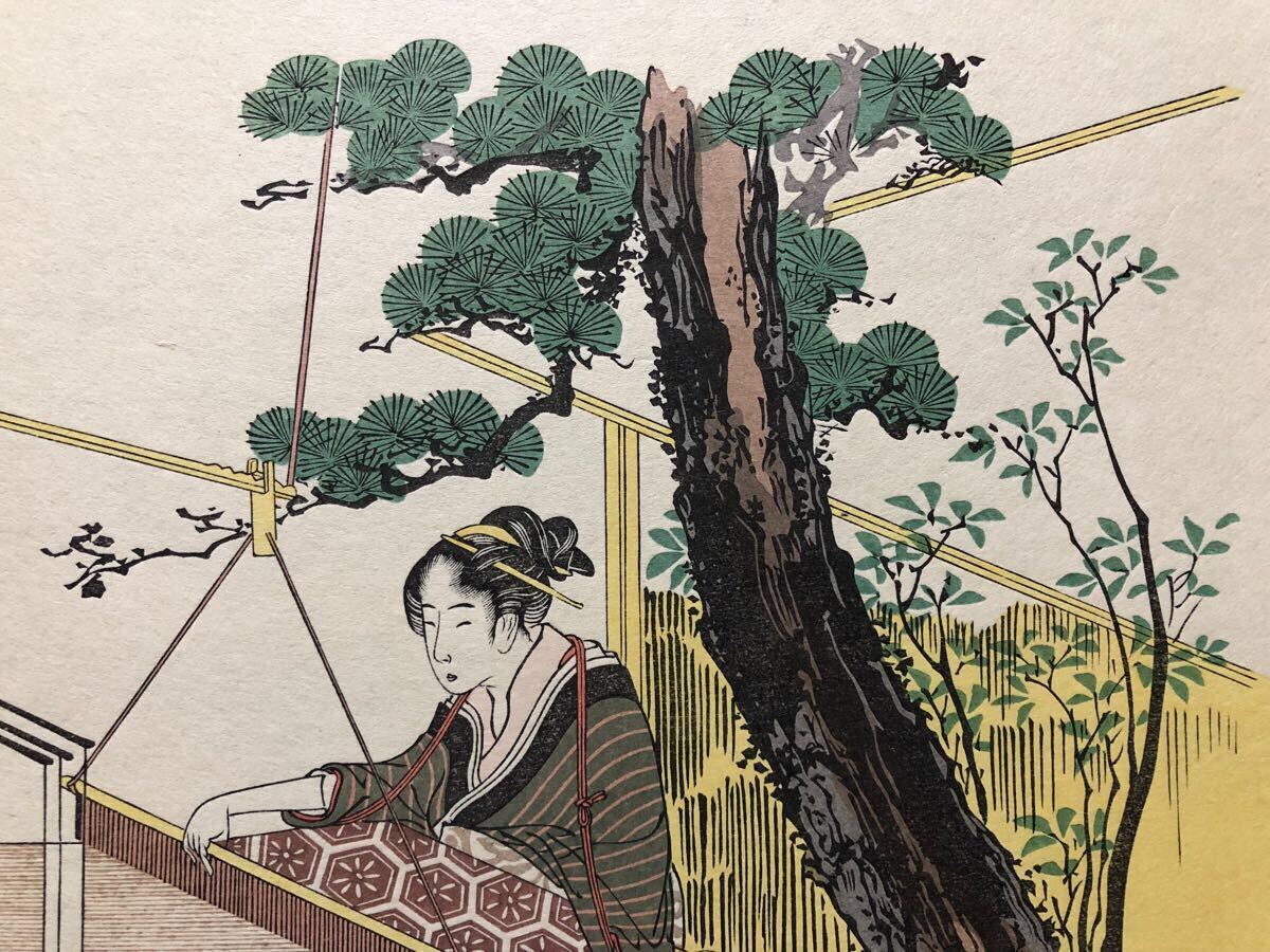 木版画 葛飾北斎【機織り】横大判 アダチ版画研究所 昭和期 復刻版 本物保証 ■ 浮世絵 錦絵 摺物 美人画 Hokusai Ukiyoe