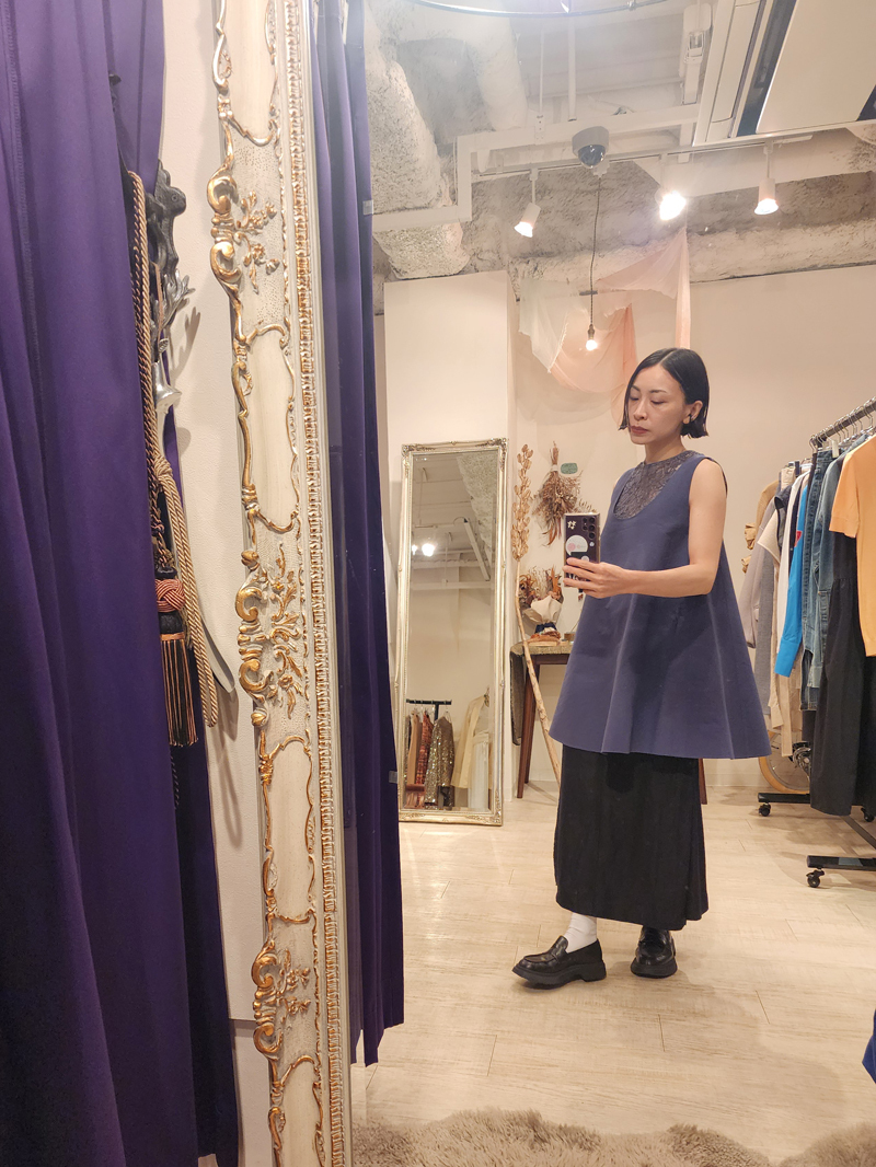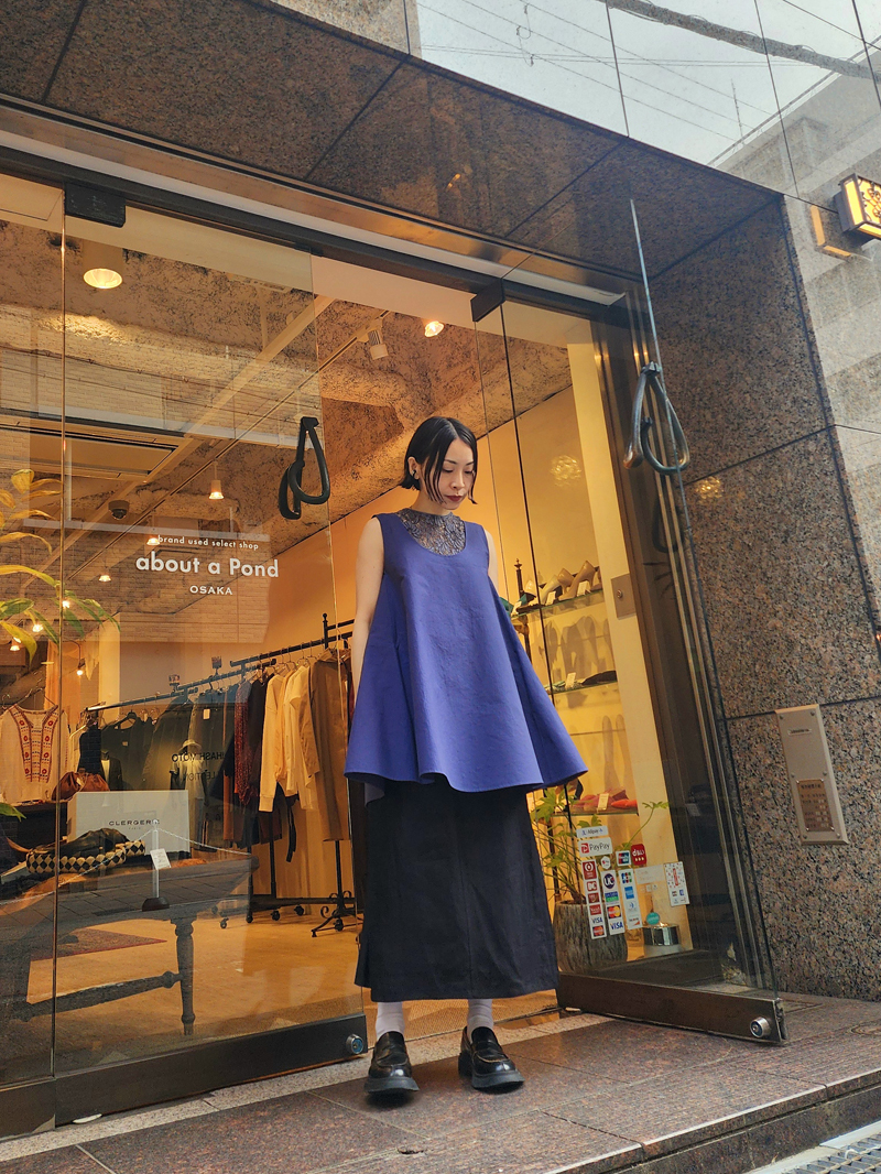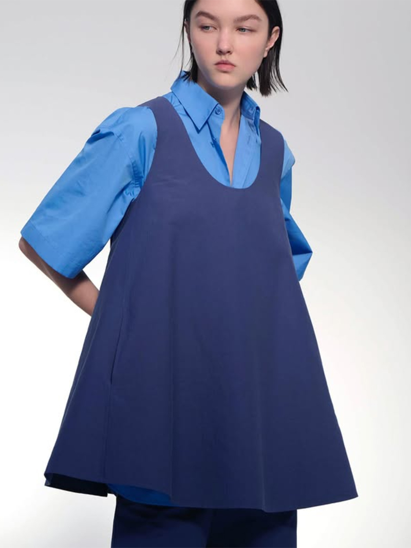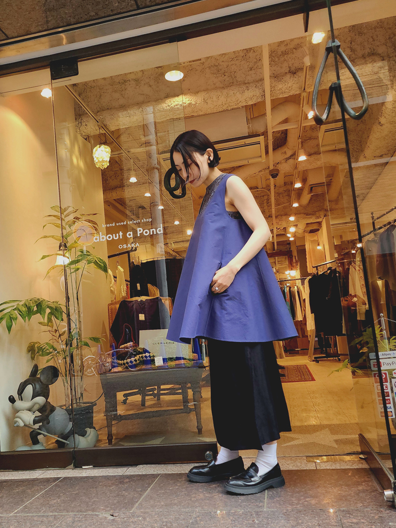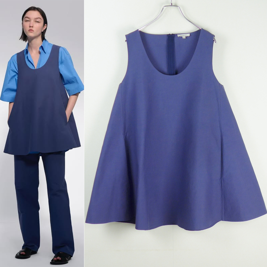 レーヤードスタイリングで様々な表情をつくるAラインのノースリーブブラウス。