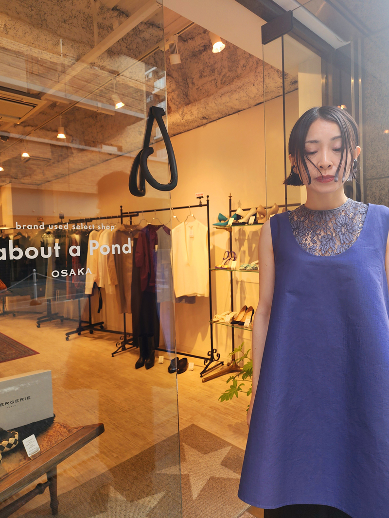 フロントは抜け感のあるUネックデザイン、バックは上品さをプラスするフォルムで甘さをおさえています。