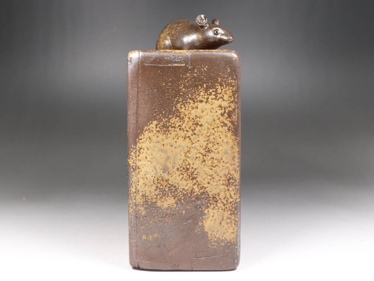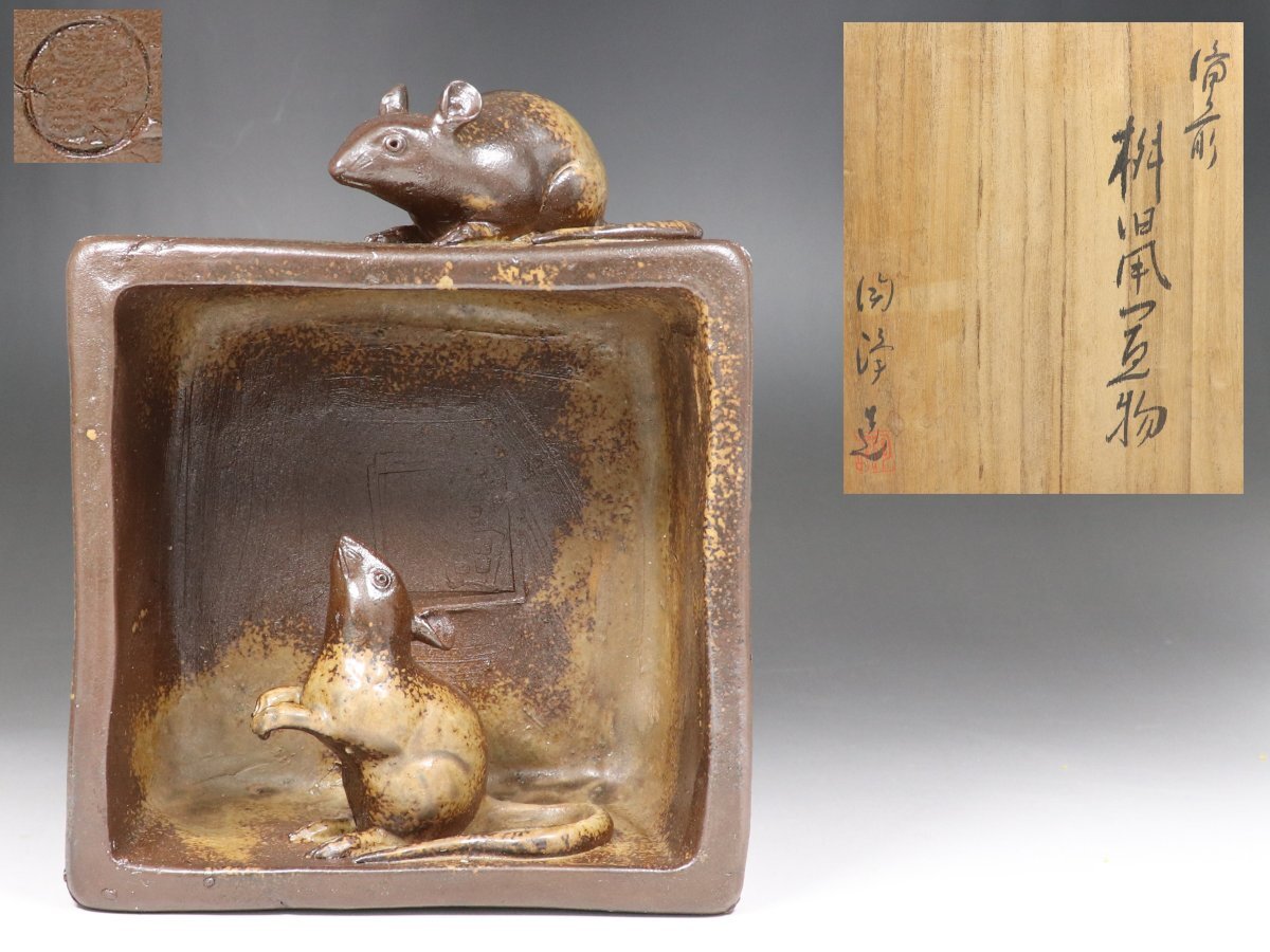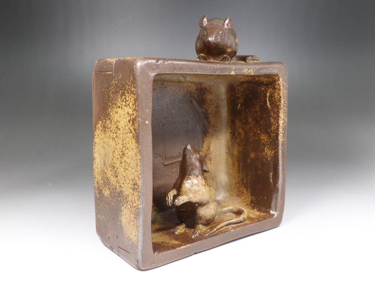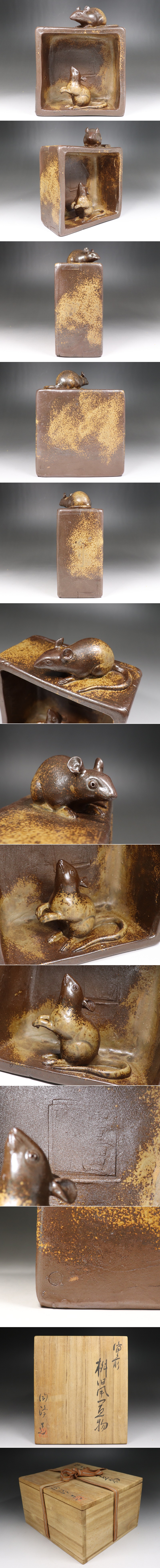 | ■備前■木村陶峰・枡鼠・置物・副字・床置・縁起物・共箱・f6114h | ||||||||||||||||||||