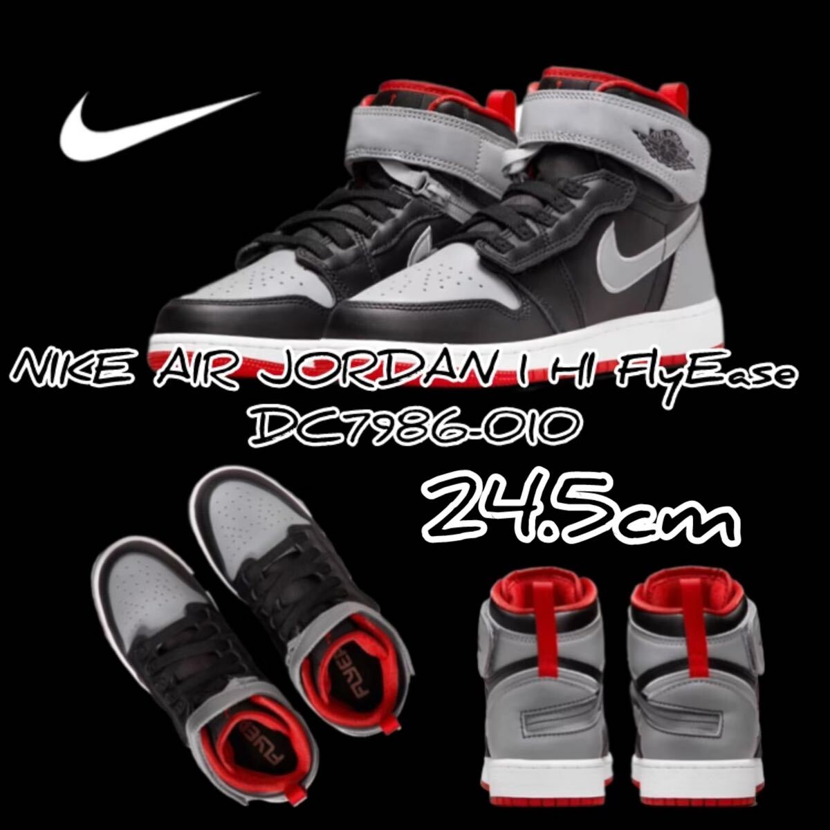 商品名: ナイキ エア ジョーダン 1 ハイ フライイーズ NIKE AIR JORDAN 1 HI FlyEase ブラック/セメントグレー/ホワイト/レッド DC7986-010