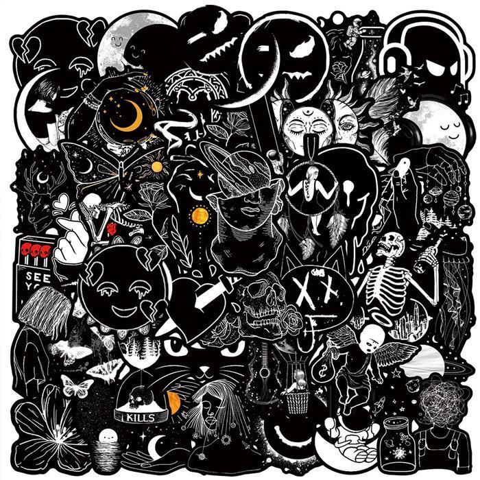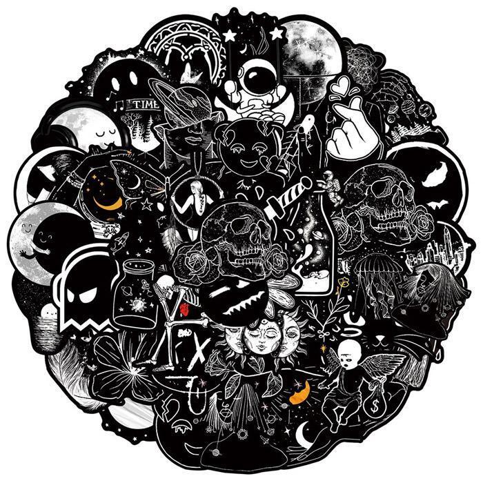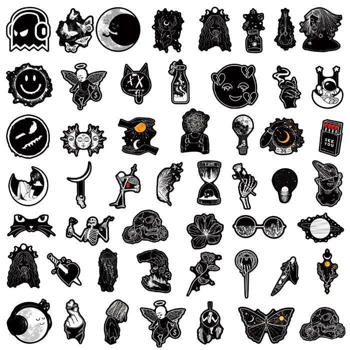 50枚 ステッカー モノクロ ゴシック かっこいい 防水 シール 1376