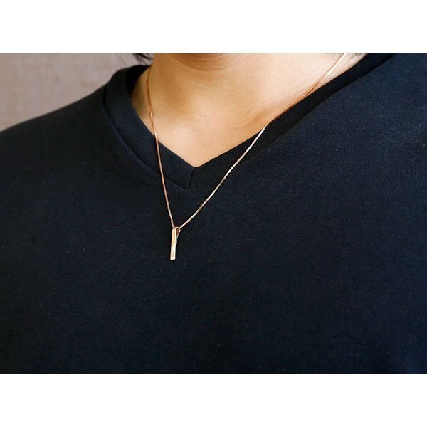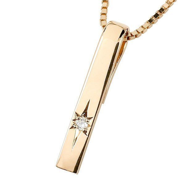 メンズ ネックレス ピンクゴールドk18 バーネックレス ダイヤモンド 一粒 ペンダント 18金 18k チェーン 地金 スター彫り
