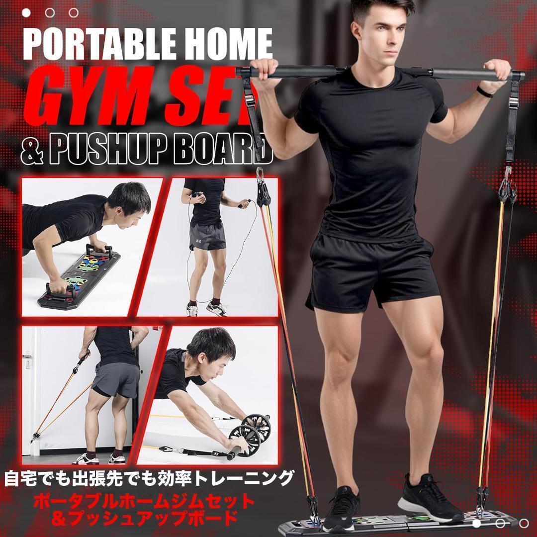 【アメリカで大人気】全身トレーニングのオールインワンパッケージ!折りたたみ式マルチプッシュアップボード、拡張バー、3段階レジスタンスバンド、アンクルストラップ、ドアアンカー、腹筋ローラー、握力グリップ、縄跳びを含む多機能セットで、色分けデザインにより胸筋、上腕三頭筋、肩、背中、下半身を効果的に鍛え、持ち運び可能なコンパクトホームジムとして自宅や旅行先でも使用可能、軽量で安定性があります!