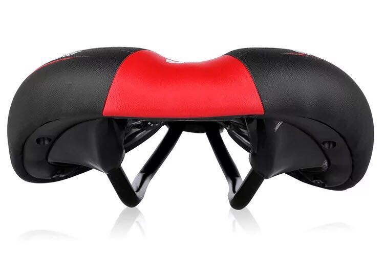 自転車 サドル 防水 低反弾力 蒸れない 超肉厚 穴あき ロードバイク 黒&赤