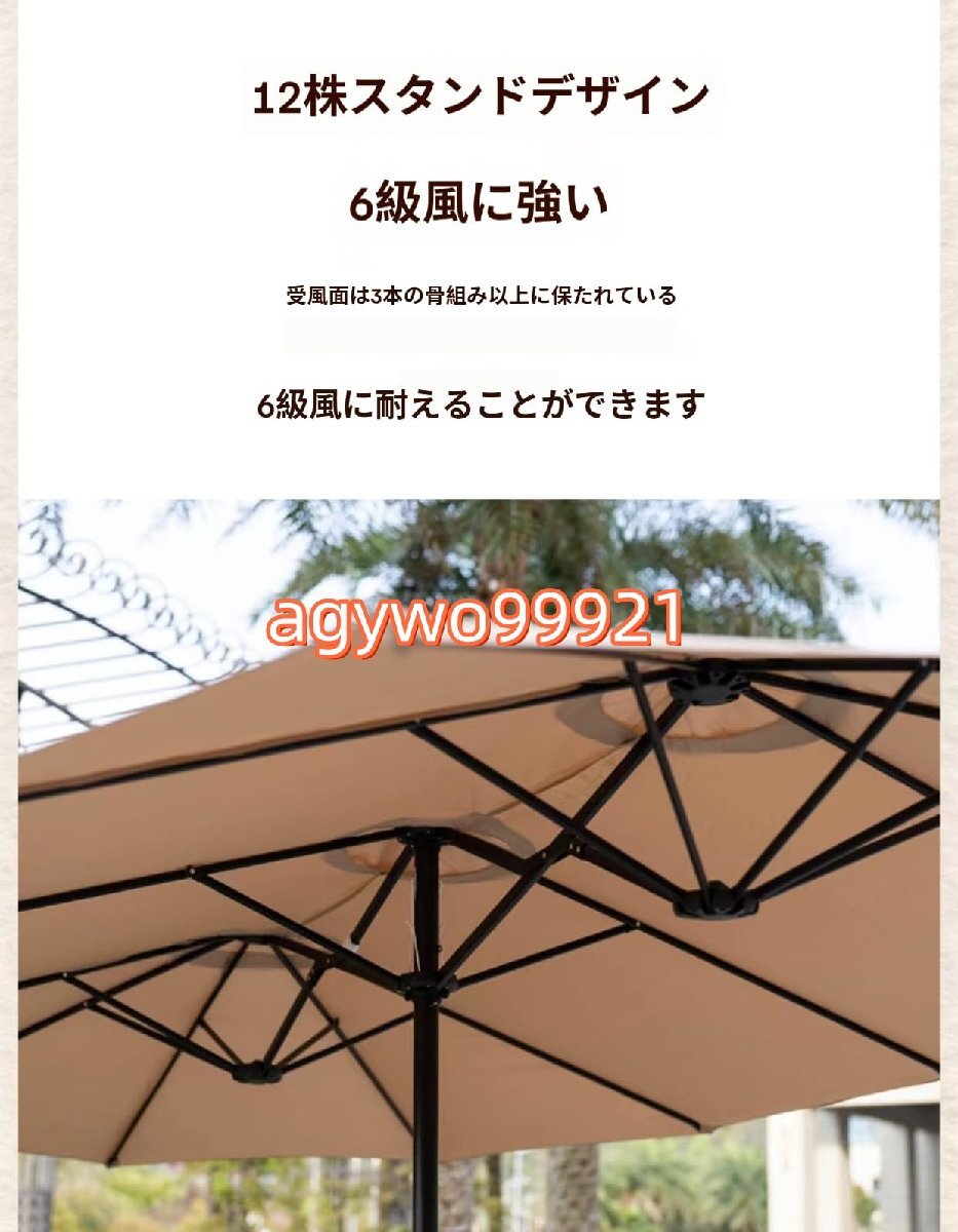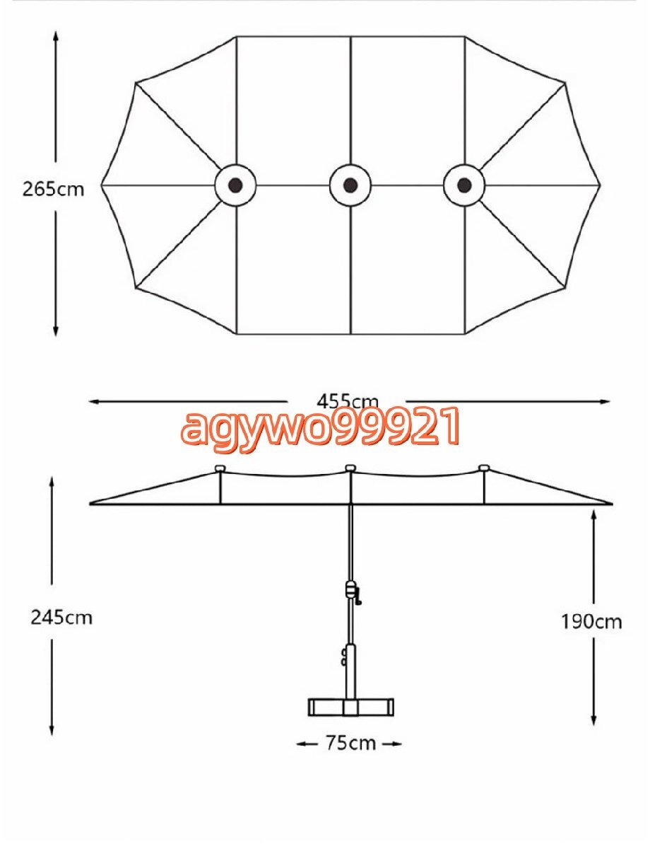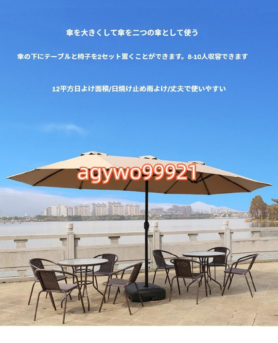 Dazzixガーデンパラソルパラソル 大型 幅455cm×奥行265cm UVカット 撥水加工 クランク式 水筒ベース付き アウトドア モダン おしゃれ 簡単設置 大型 カフェテラス オープンエア BBQ・ビーチ・キャンプに最適