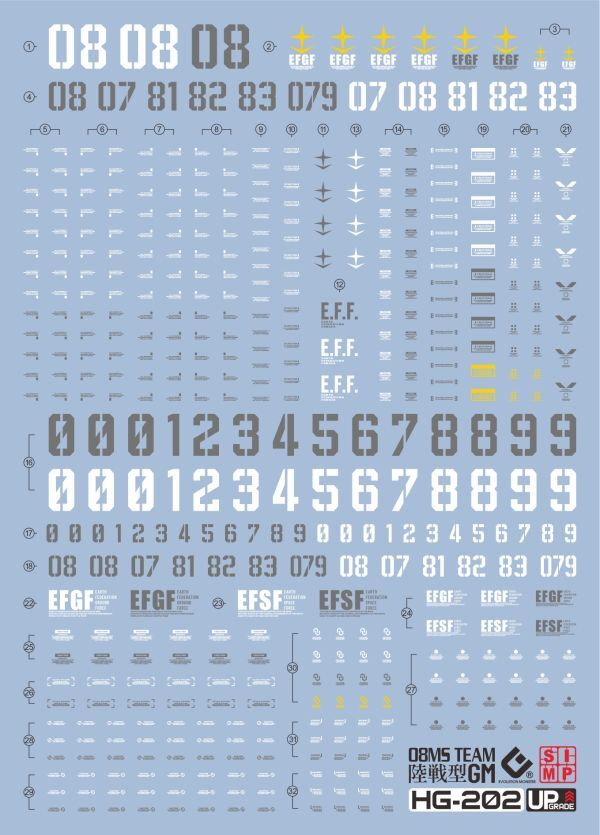 HG-202 1/144 機動戦士ガンダム 第08MS小隊 1/144 陸戦型ジム用 DIY 水転写式デカール