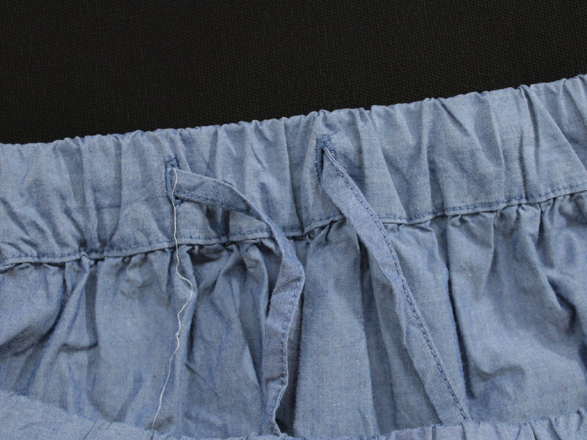 ウエストはゴムギャザーで楽に穿くことができ、内側の紐でサイズ調整も可能です。