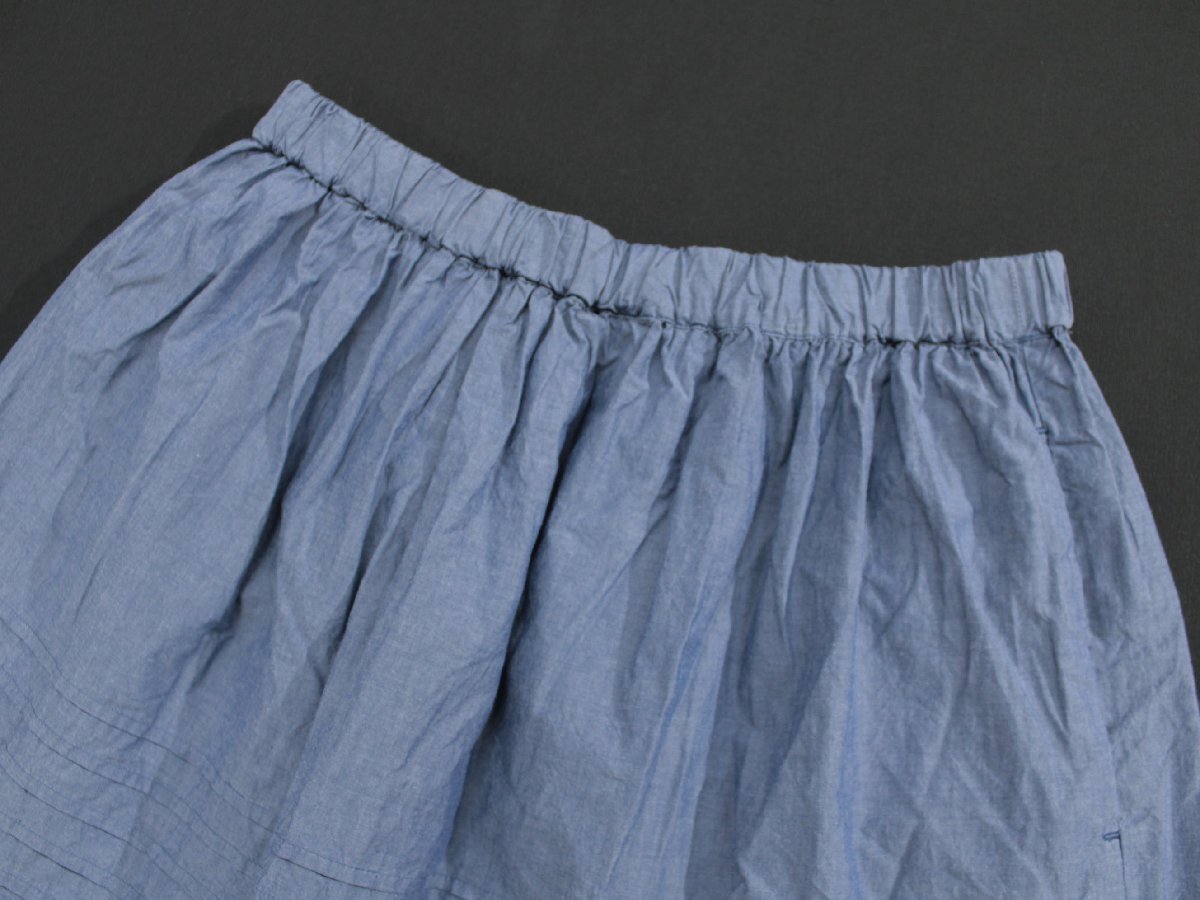 切替部分と裾にピンタックが施され、ロング丈でも軽やかな印象です。