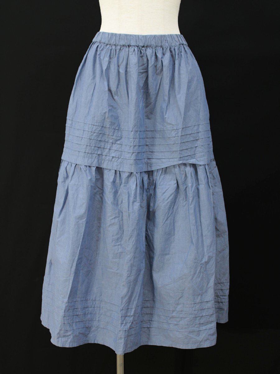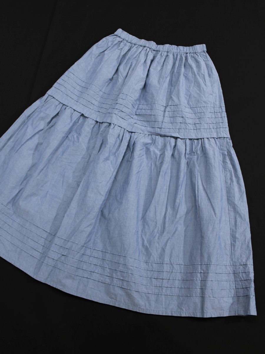 2022年美品 グランマママドーター コットンピンタックティアードスカート ブルー0 am597