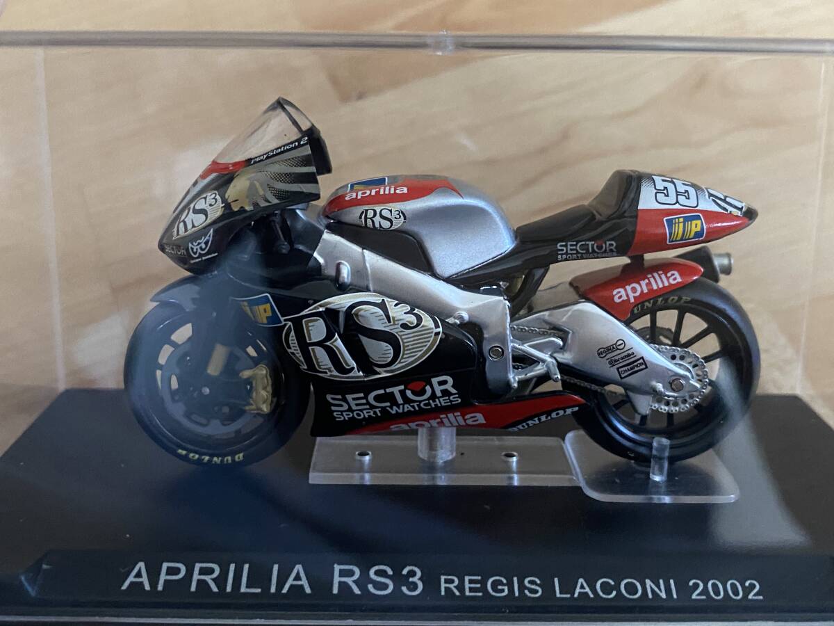 送料600円◆ディアゴスティーニ◆チャンピオン・バイク・コレクション◆APRILIA RS3 REGIS LACONI 2002◆ケース(約13cm×約6cm)付き