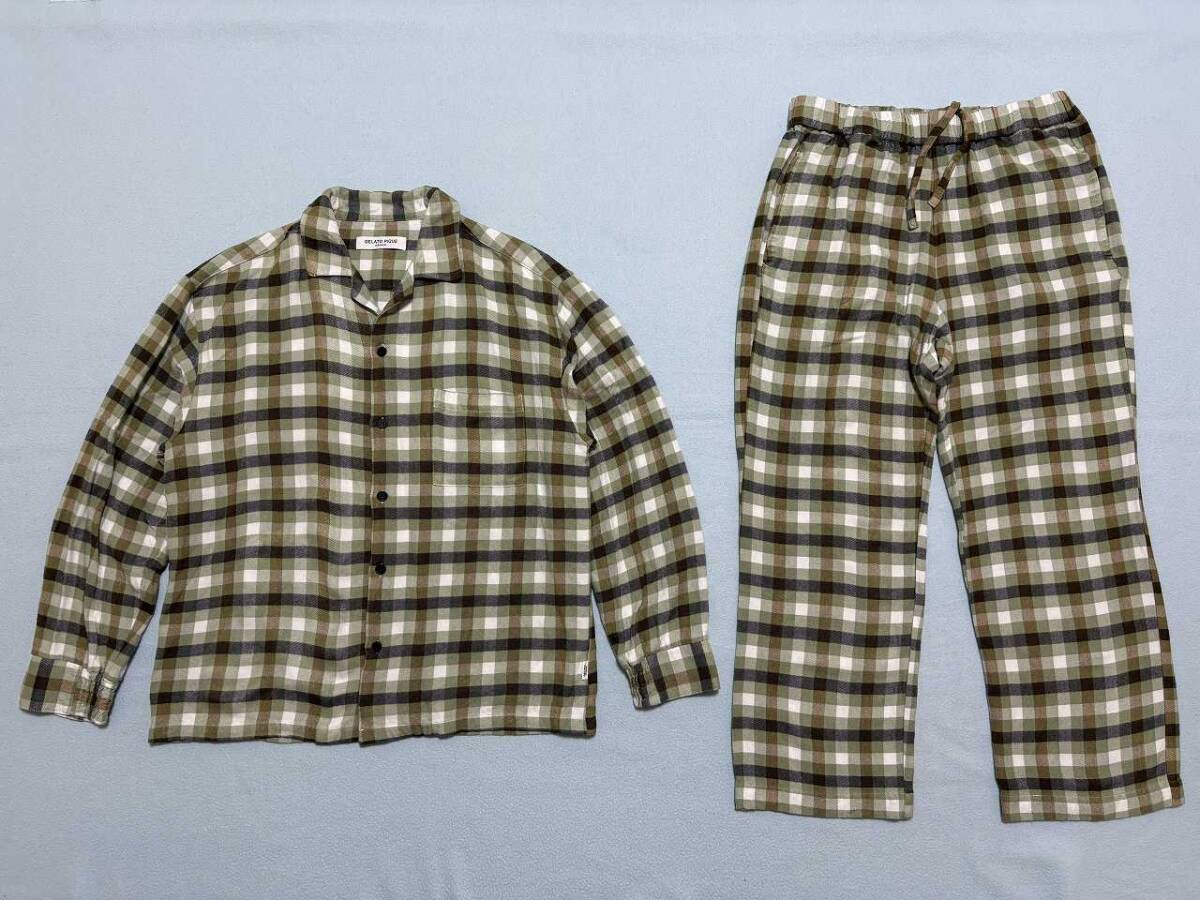 | ジェラートピケオムのレーヨンネルパジャマシャツパンツセットになります。 滑らかな落ち感が心地よいレーヨンを使用 袖口にはゴムを施しています。 パンツは両サイドにはポケット付で利便性が良いです。 ウエストは内側にサイズ調整可能な紐があります。 ユニセックスで着られます。 正規店購入品です。 喫煙無し、ペット無しです。 シャツ定価6930円税込み パンツ定価6930円税込み ●シャツ 【 色 】 オリーブ 【 型番 】 PMFT214958 【サイズ】 L ↓実寸サイズを載せておきます。 ・ 着丈:66.0cm ・ 肩幅:50.0cm ・ 身幅:56.0cm ・ 袖丈:55.0cm 【 素材 】 レーヨン 100% ●パンツ 【 色 】 オリーブ 【 型番 】 PMFP214959 【サイズ】 M ↓実寸サイズを載せておきます。 ・ ウエスト:35.0cm(平置きの長さ) ・ レングス:57.0cm(股下からすそまでの直線による長さ) ・ 股上:28.0cm 【 素材 】 レーヨン 100% 【 状態 】 中古 【発送方法】 圧縮梱包なし、水濡れ防止いたします。 目立つような汚れボタンの破損は無いです。 着用は2回です。 あくまで、古着ですので ご理解頂ける方のみ入札をお願い致します。 洗濯の実績があります。 10段階中7程度です。 状態評価について 10・・・新品、試着のみ 9・・・数回着用 8・・・数十回着用 7・・・洗濯有り(クリーニングも含む) 6・・・汚れ、ほつれ、スレの痛みがあります 5・・・ボタンが無い、チャックが壊れている、穴が開いている | ||