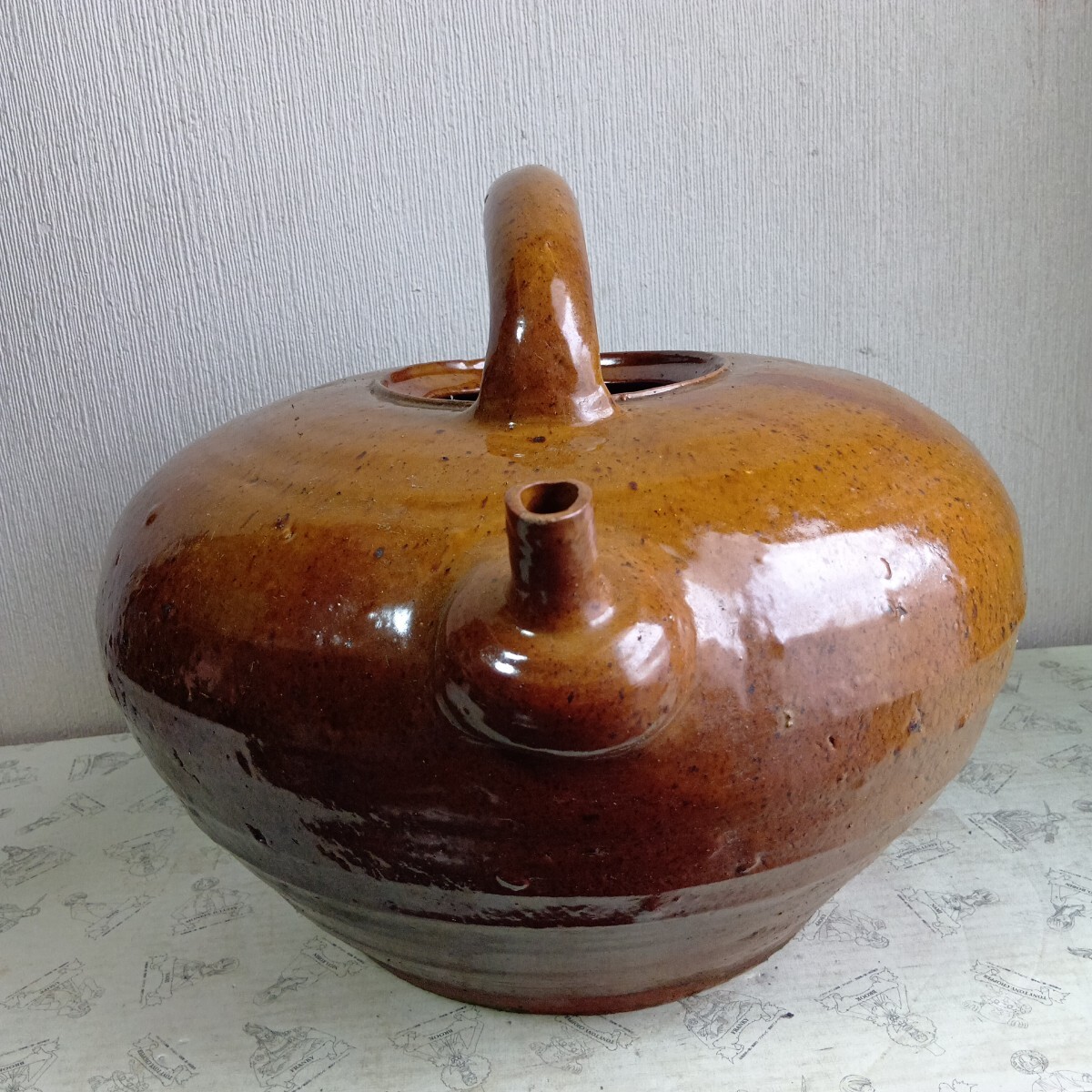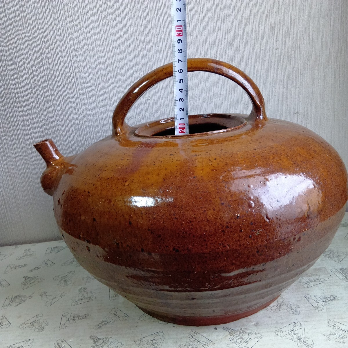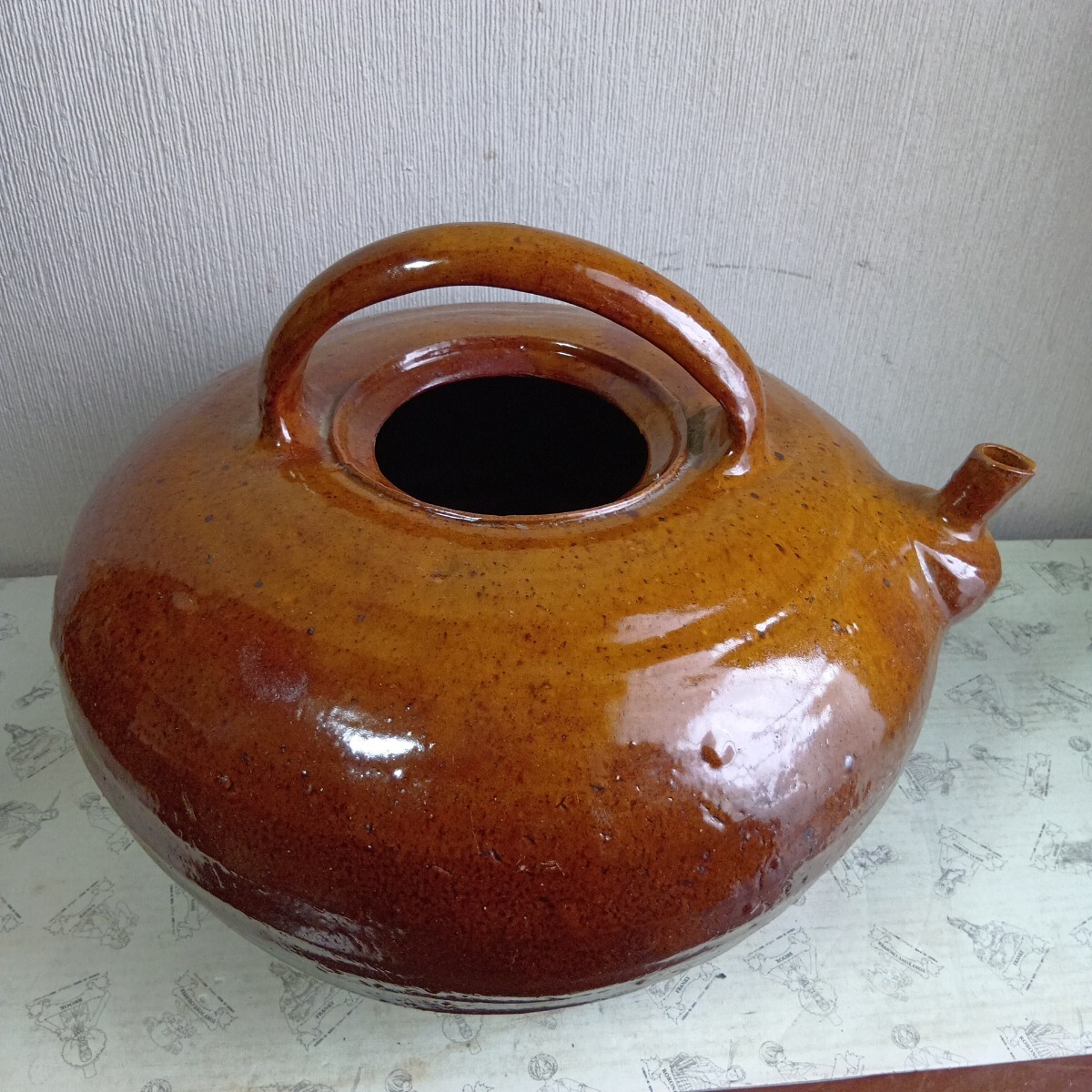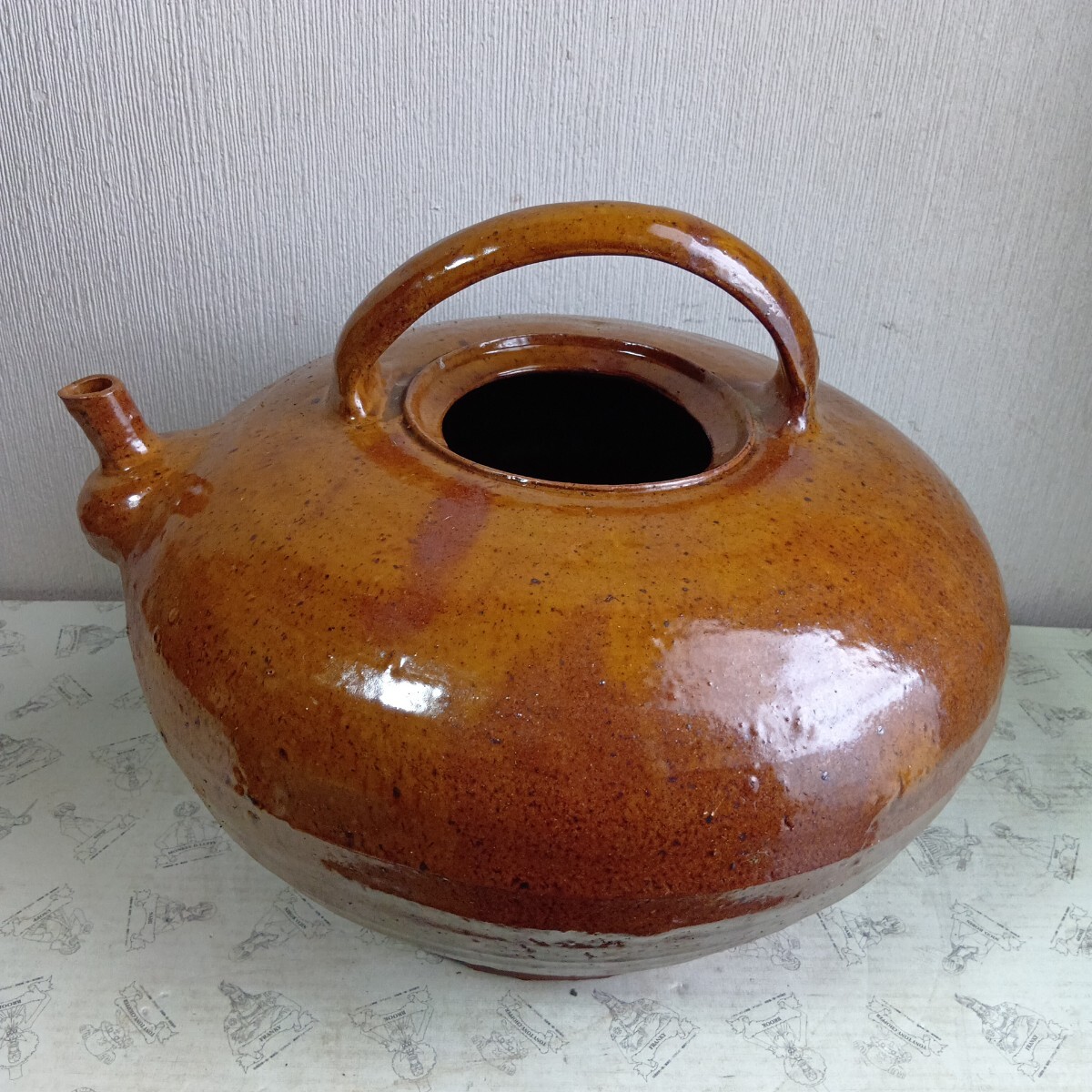 大型花器 急須型花瓶 高さ約28cm 胴径36cm 旧家蔵出し品 骨董 時代不明 良く画像をご覧頂き入札をお考え下さい