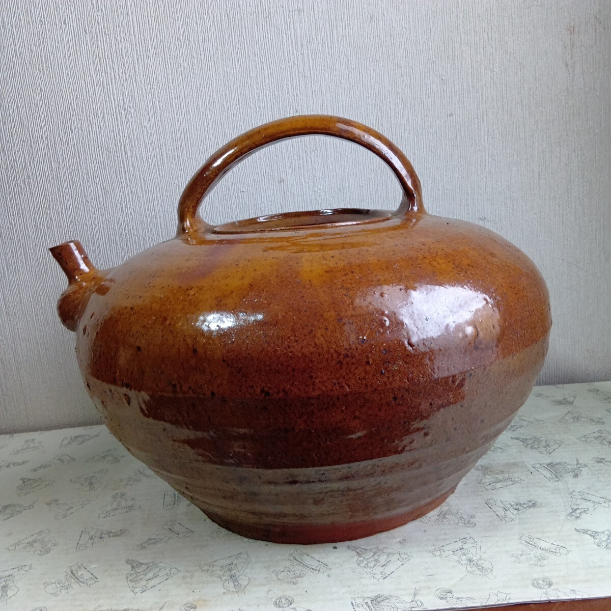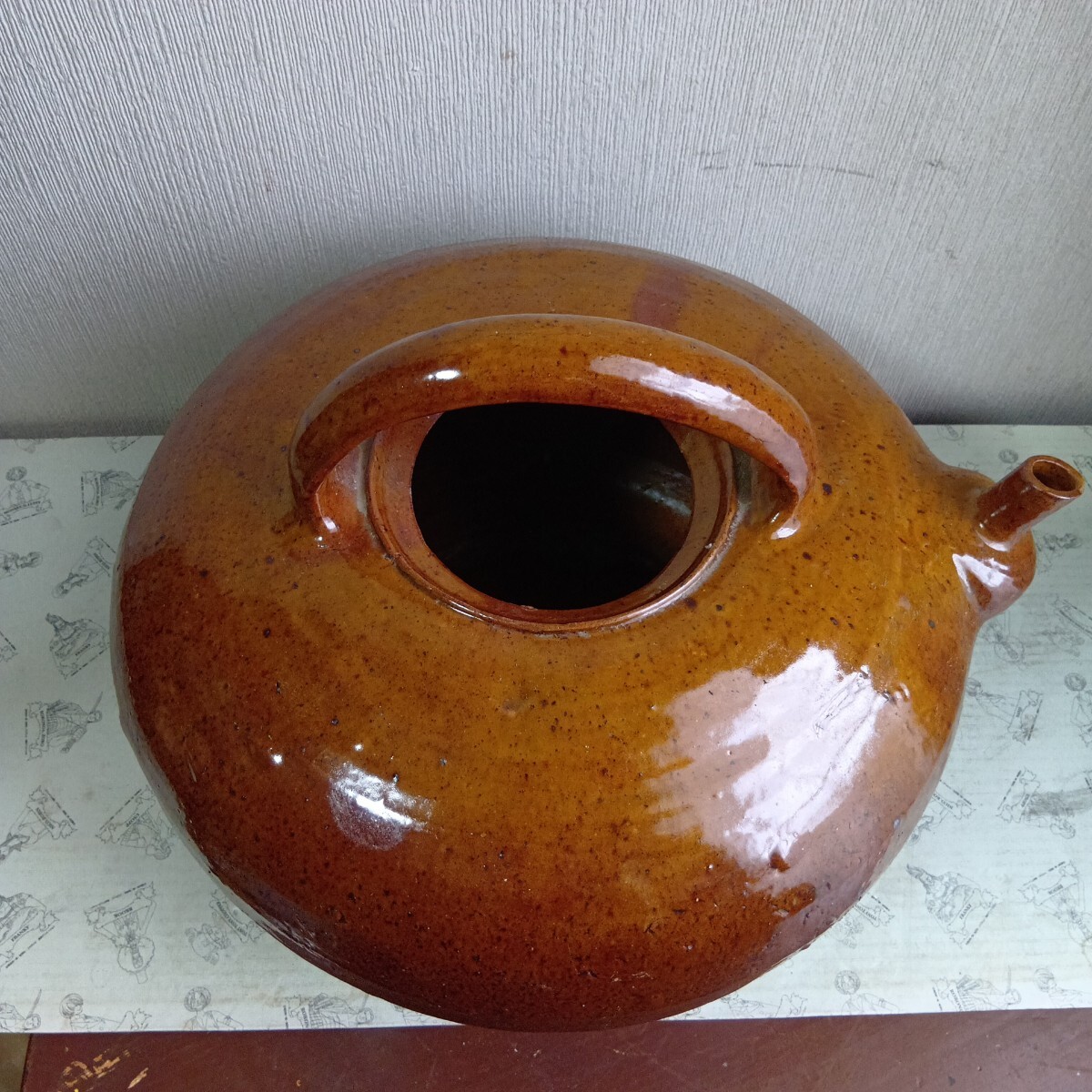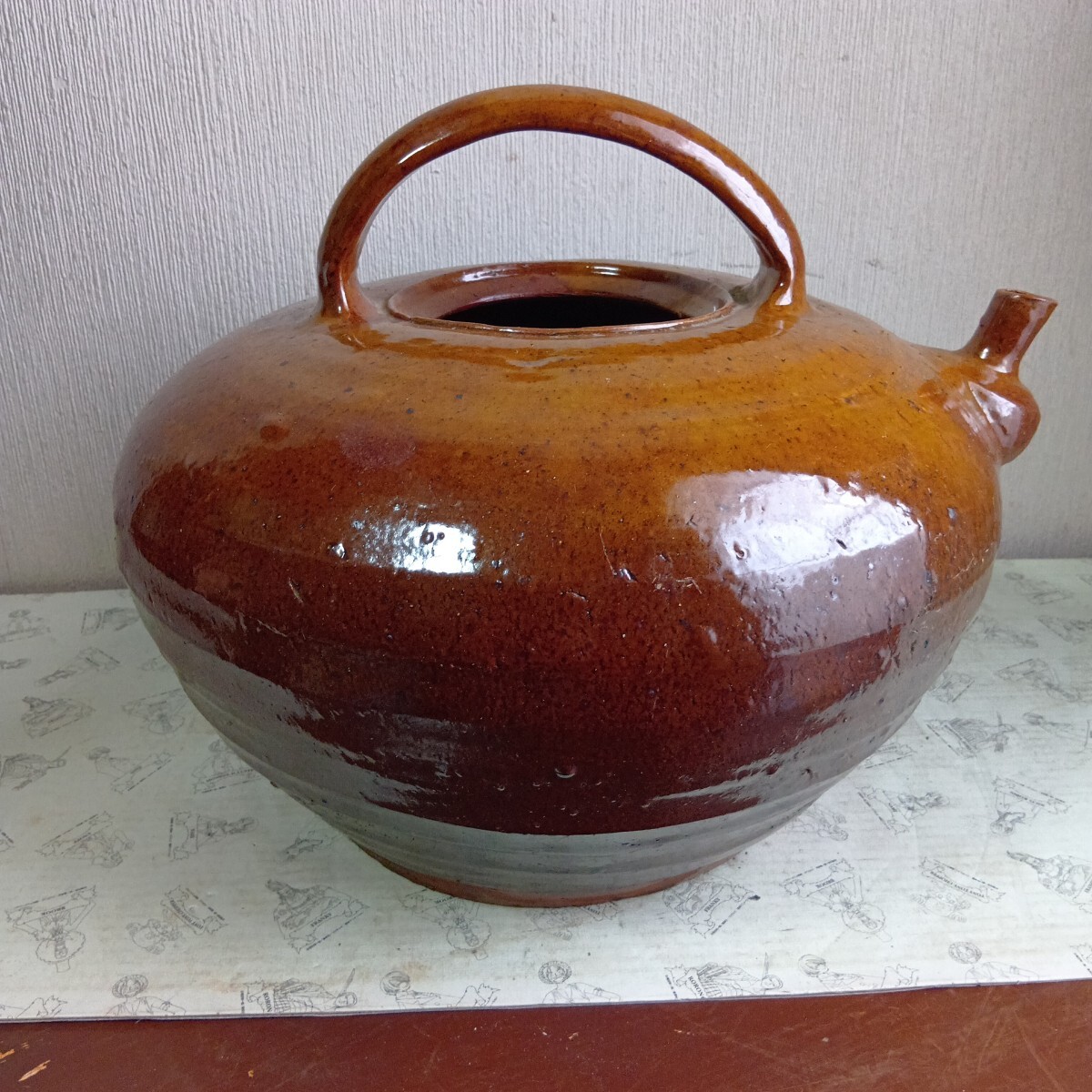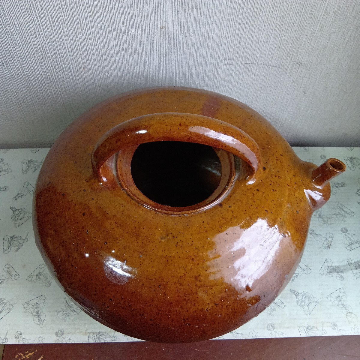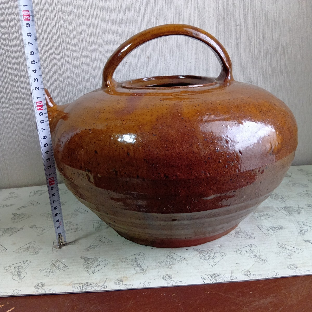 大型花器 急須型花瓶 高さ約28cm 胴径36cm 旧家蔵出し品 骨董 時代不明 良く画像をご覧頂き入札をお考え下さい