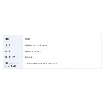 重厚な雰囲気をまとった万年筆です。スリムタイプで、持ち運びに便利な1本です。 |