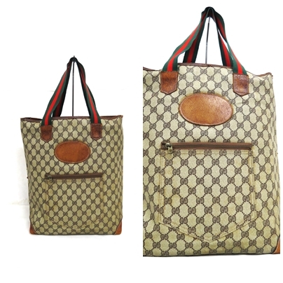 【イタリア製】GUCCI グッチ オールドグッチ シェリーライン トートバッグ GG柄 PVCレザー ヴィンテージ アンティーク 中古品 02-15-K43