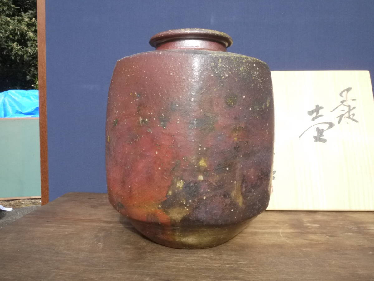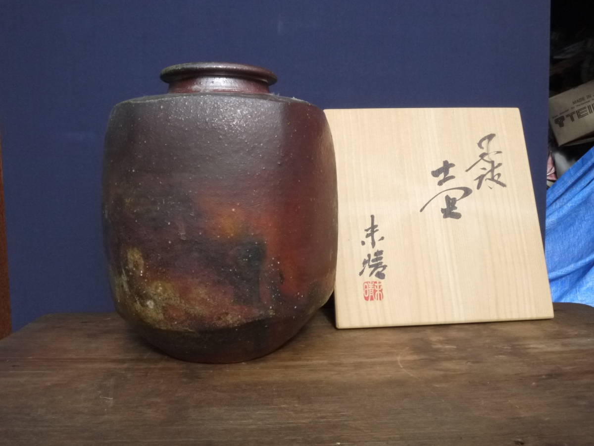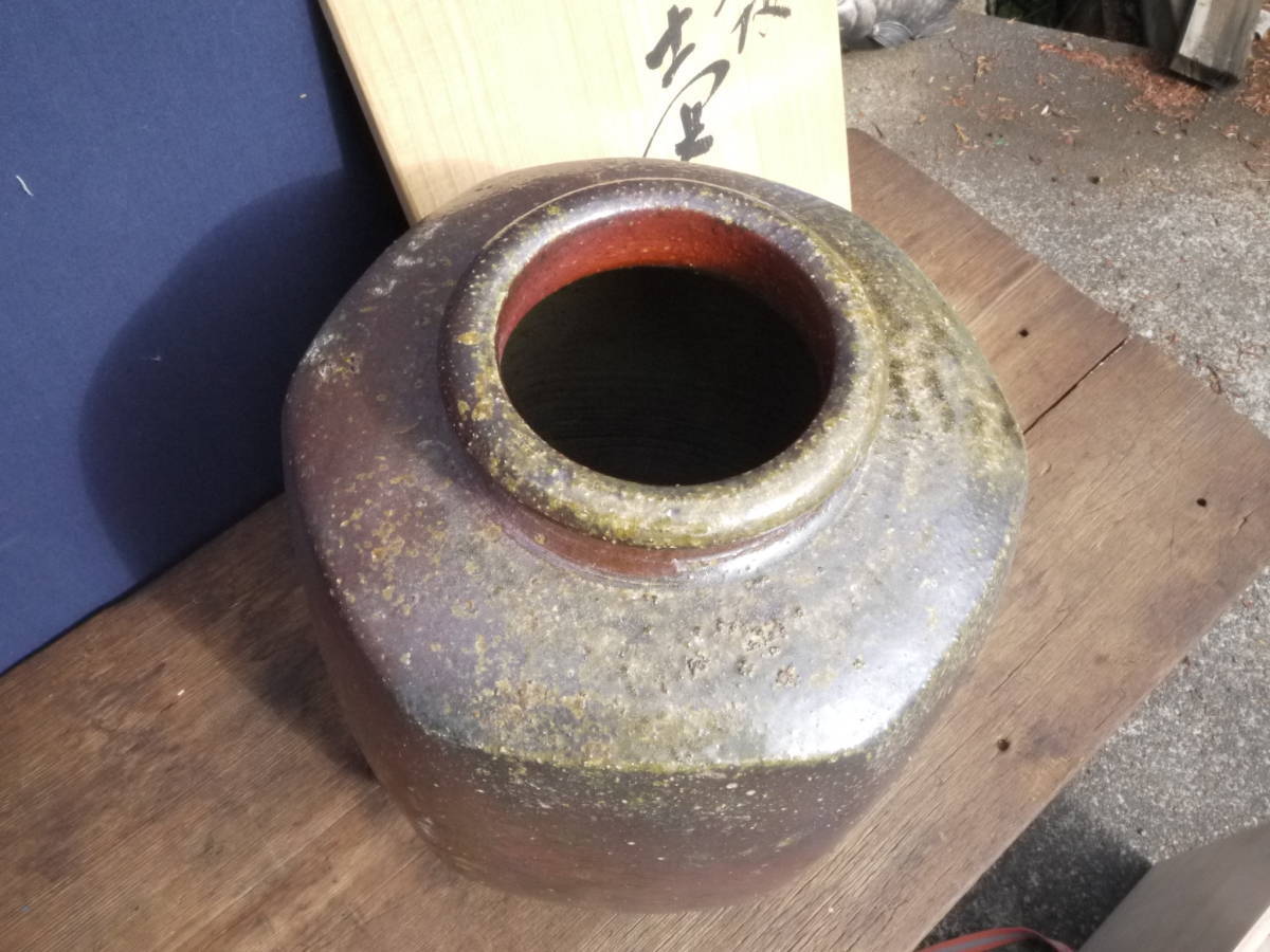 ★【A30114】丹波焼 西端末晴 六角壺 花器 花瓶 底部掻名「末晴」・丹波末晴窯 共箱付属