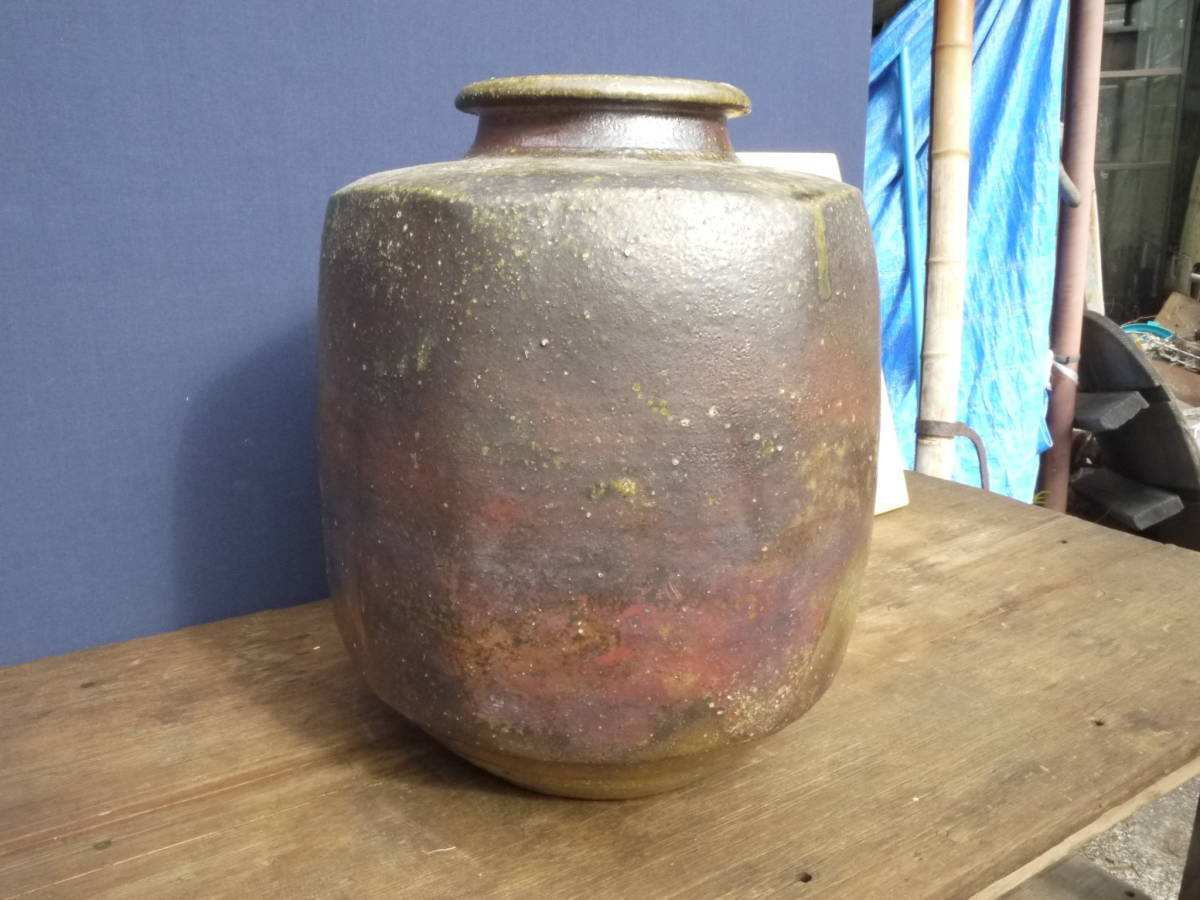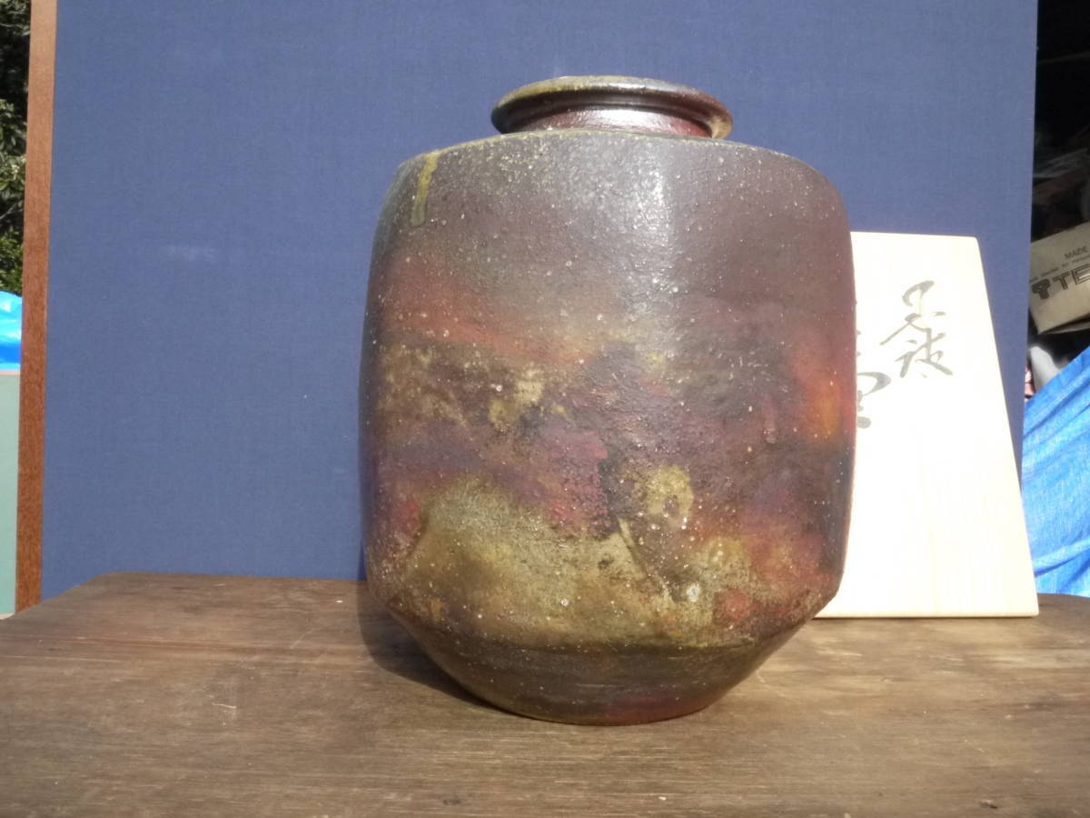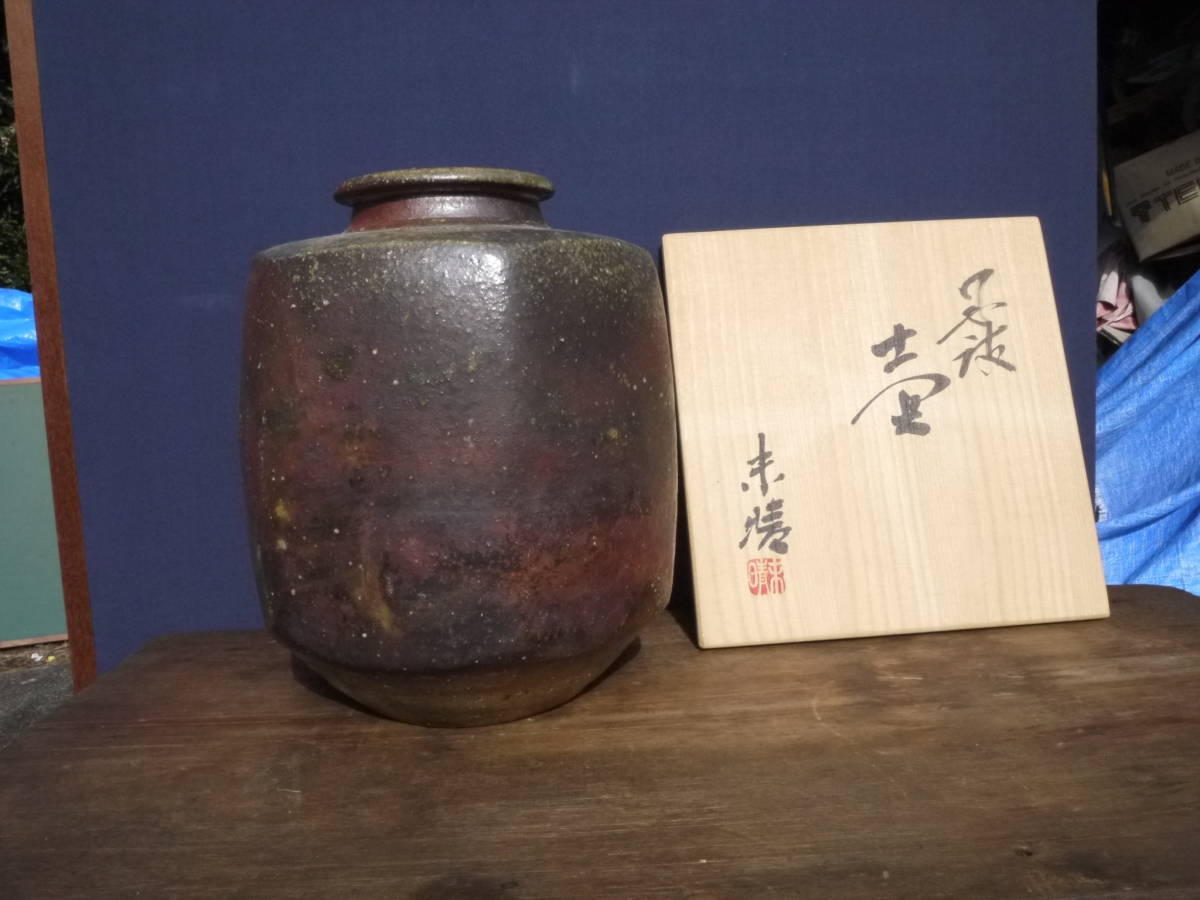 ★【A30114】丹波焼 西端末晴 六角壺 花器 花瓶 底部掻名「末晴」・丹波末晴窯 共箱付属