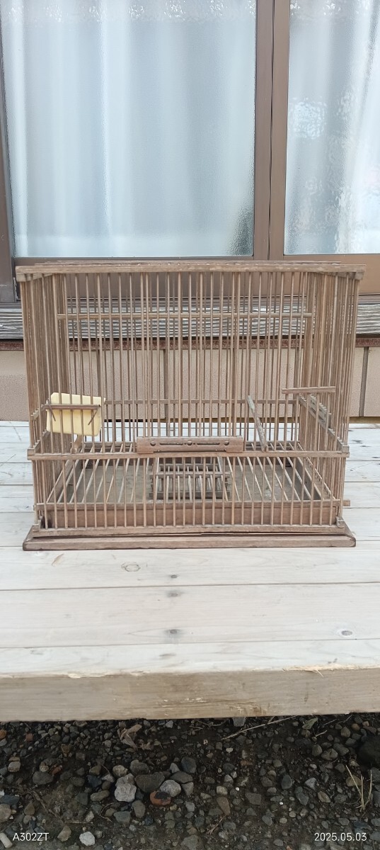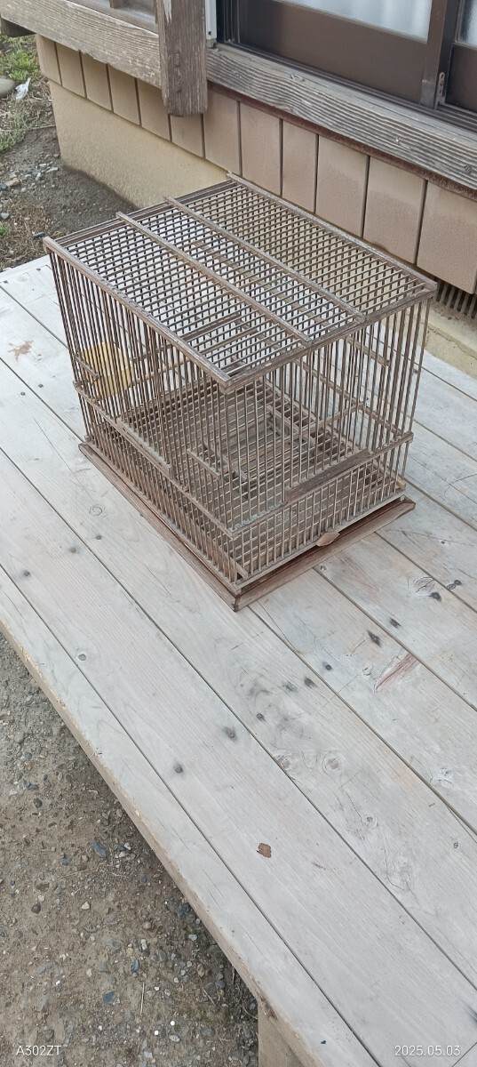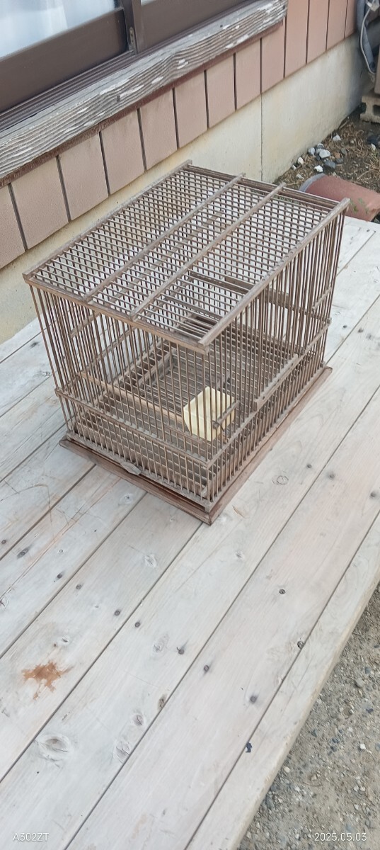 昭和レトロアンティーク木製鳥かご 竹かご メジロ ジュウシマツ用。