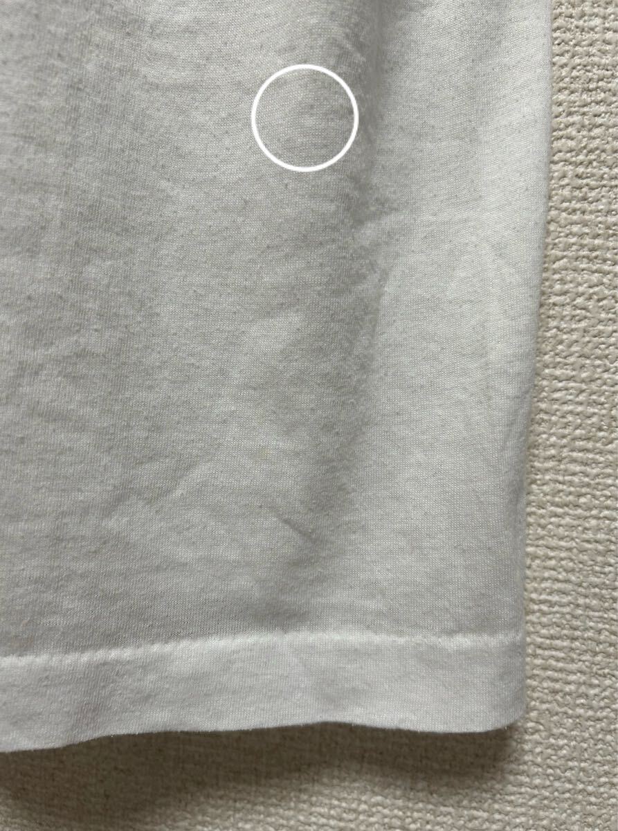 襟周りに多少黄ばみ汚れ、右裾やプリント上辺りに汚れ