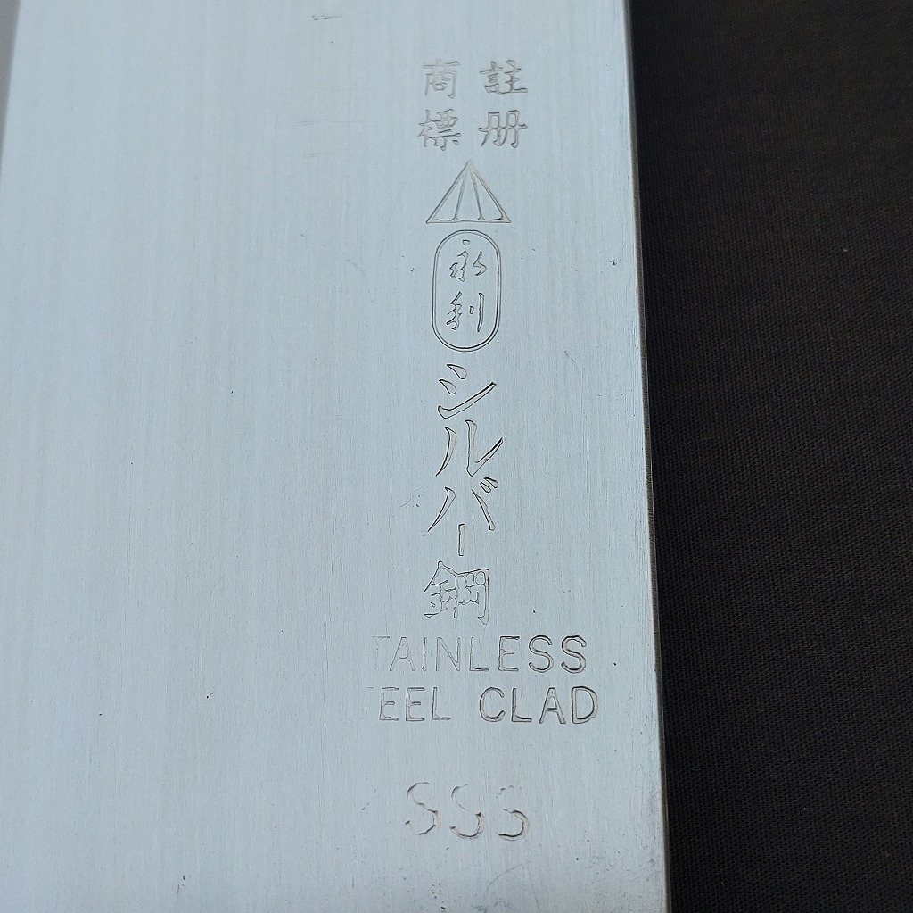 中華包丁 肉切包丁 チョッパー 永利 シルバー鋼 STAINLESS STEEL CLAD SSS 刃長約180㎜ 峰厚約3㎜ 重量約380g 両刃 業務用 庖丁 【5996】