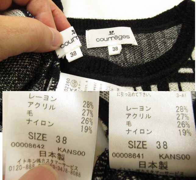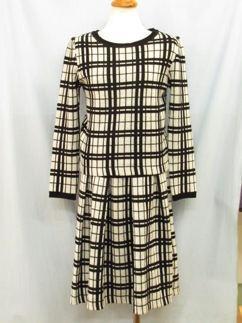 【色】 白×黒 【サイズ】 表記:38 メジャー採寸: トップス:約 肩幅35 袖丈53 胸囲42 丈50 スカート:約 ウエスト31(ゴムを引っ張ると約38ぐらいまで伸びます) 丈60 【素材】 レーヨン28 アクリル27 毛26 ナイロン19 【付属品】 なし 【参考定価】 -円 【商品説明】 クレージュの画像のようにチェック柄のニット素材の長袖トップスとウエストゴム入りスカートのセットアップです。 -------------------------------------- 【状態ランク】 外観:A~B 中側:A~B 【状態説明】 ・少し毛羽立ち感があるぐらいで特に目立つような汚れや引っかき傷などはありません。 ・目立たない程度の小さな汚れ等はご了承下さい。 |