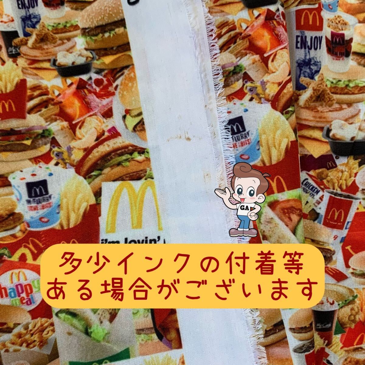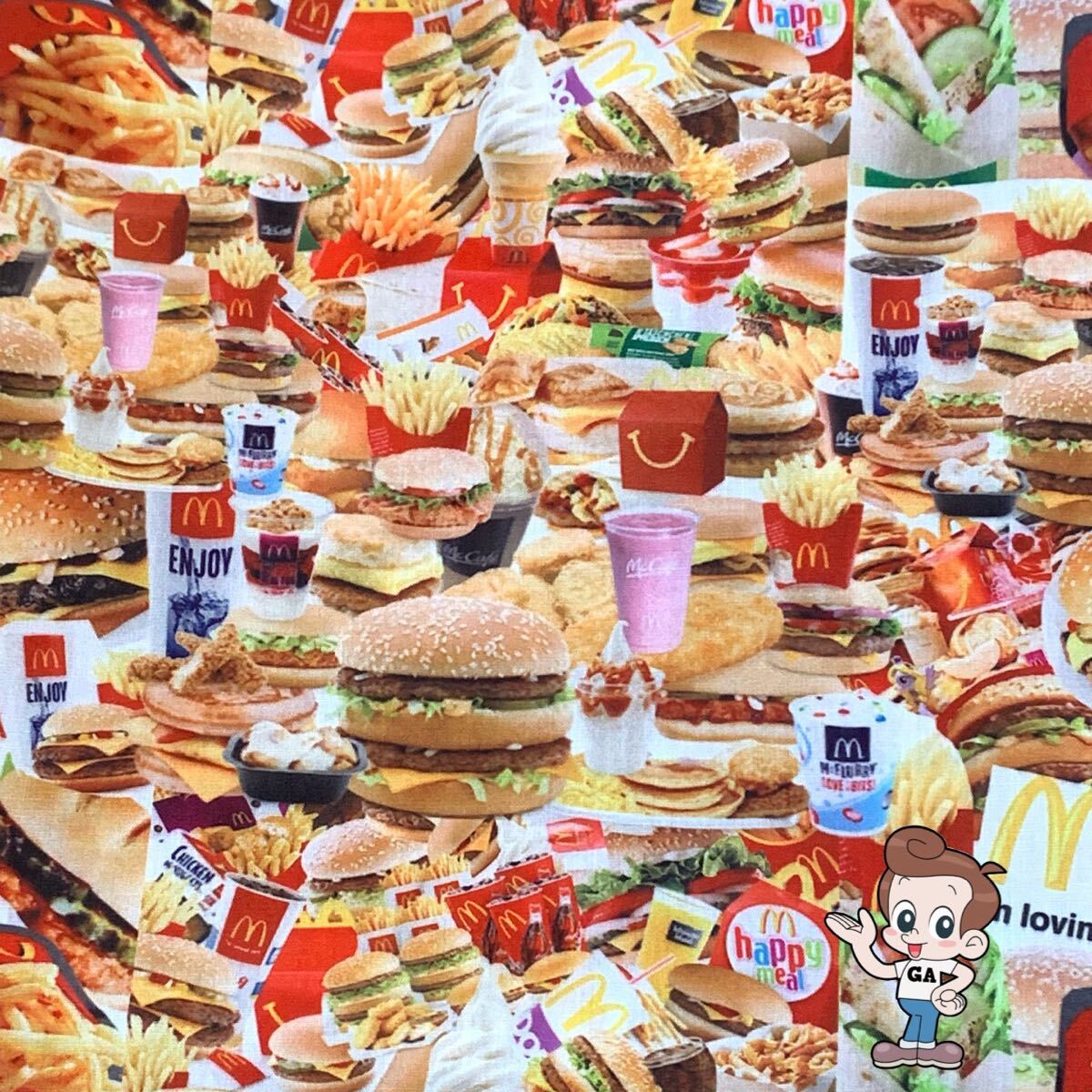 送料込★マクドナルドメニュー 生地はぎれ ファストフード ジャンクフード ハンバーガー/ポテト/ドリンク等 ハンドメイド リメイク材料 布