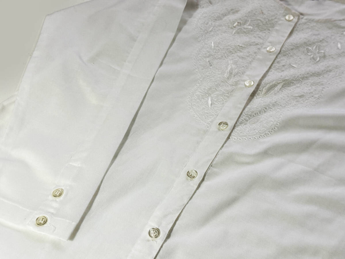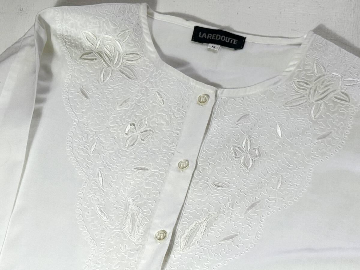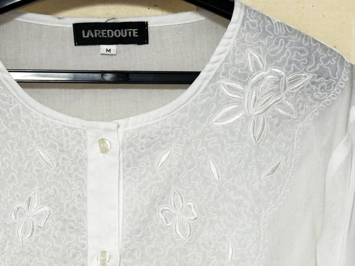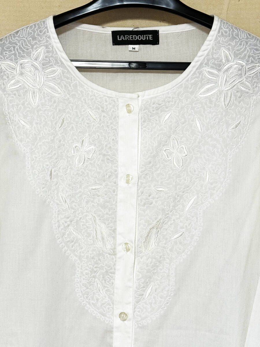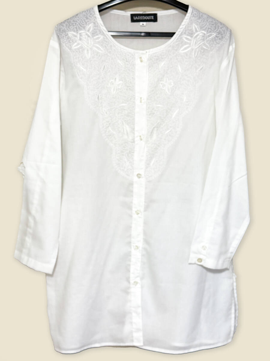 ★刺繍ロングブラウス★LAREDOUTE ☆ノーカラー☆涼やか刺繍★Mサイズ★USED★