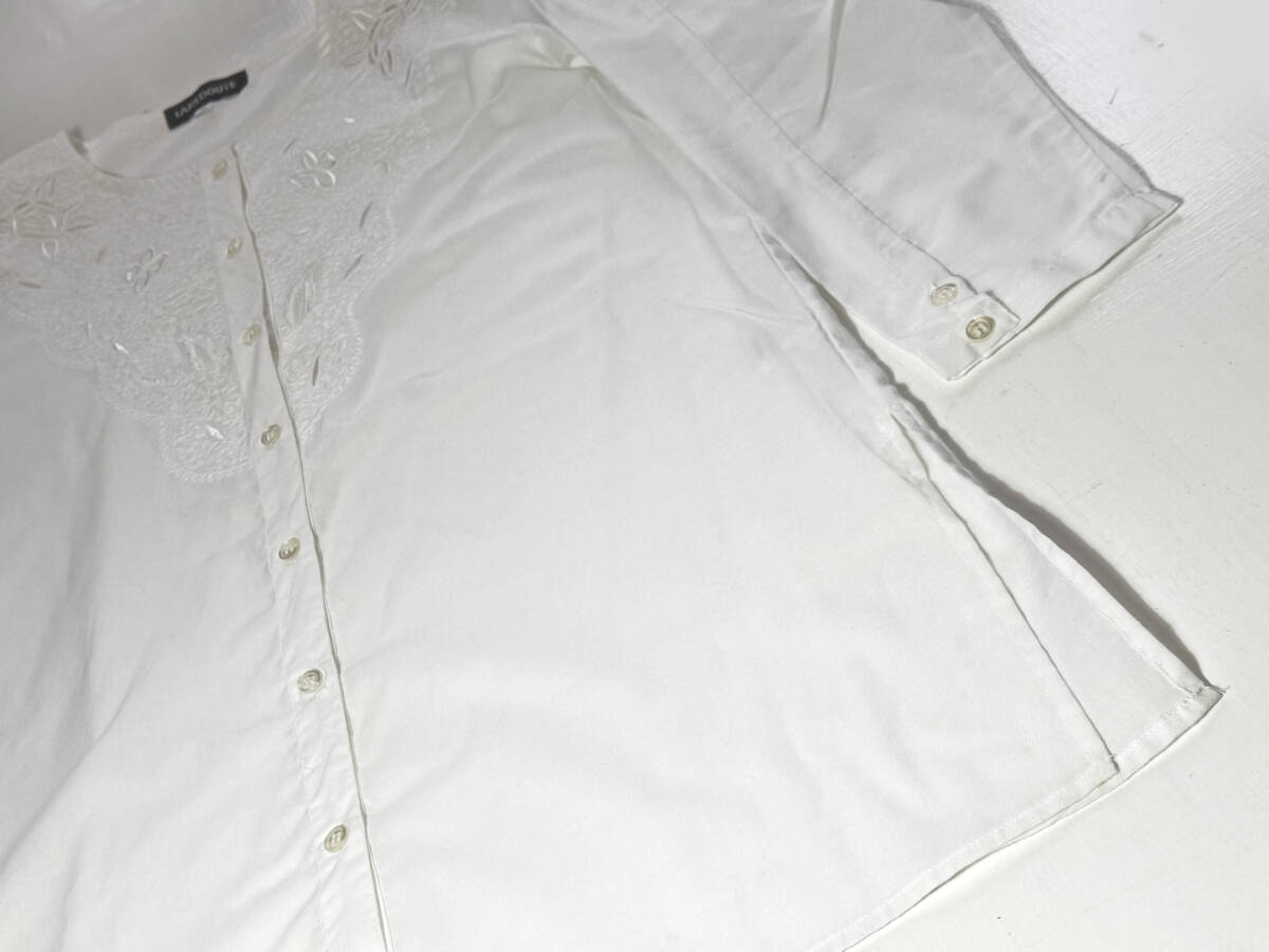 ★刺繍ロングブラウス★ LAREDOUTE ☆ノーカラー☆涼やか刺繍★Mサイズ★USED★