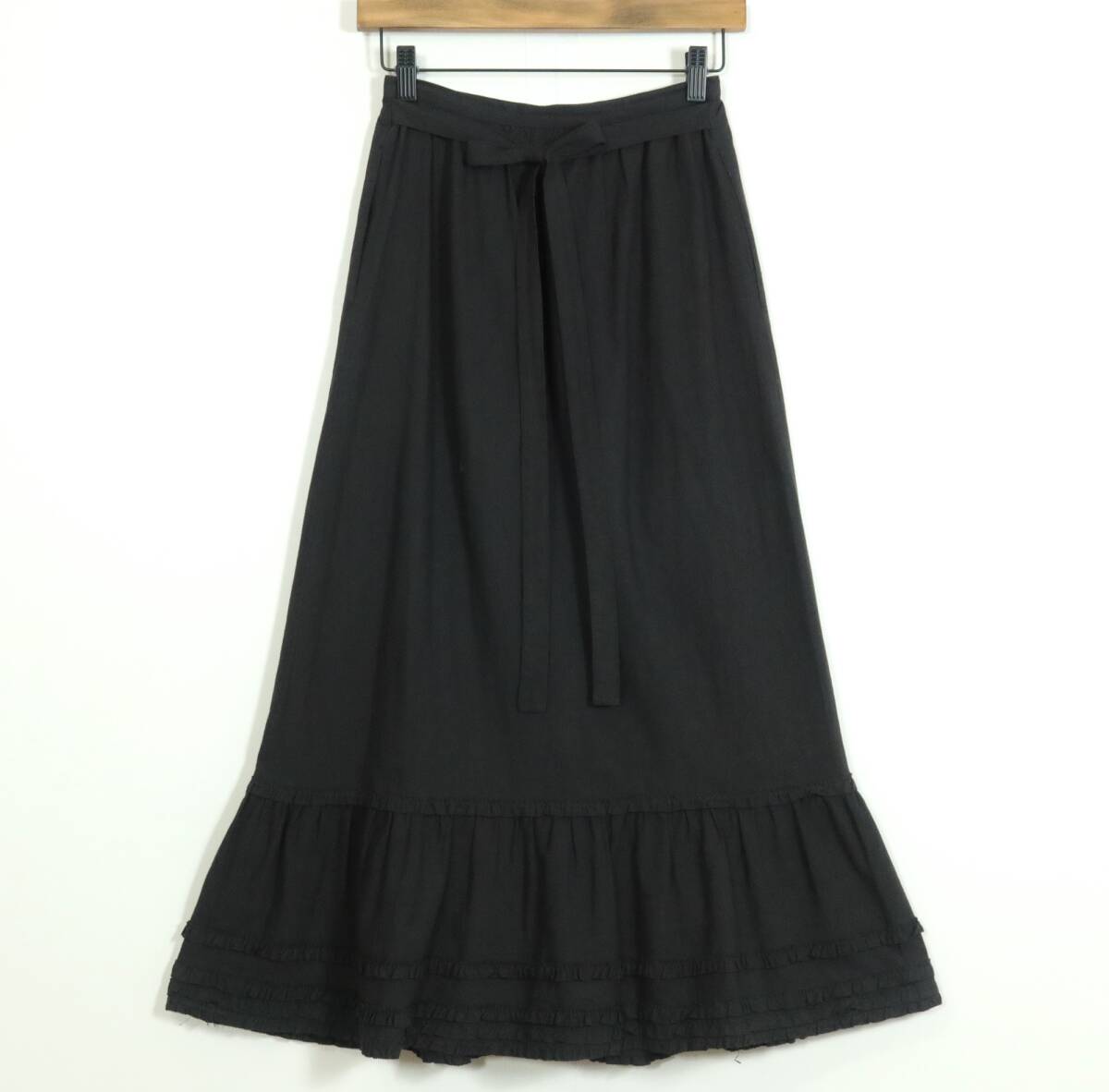 | 商品説明 | 【実寸約】ウエスト62丈85(cm) 【サイズ表記】 なし。実寸をご参照くださいませ。 【素材】 綿100% 【状態】普通の使用感のあるお品物 【デザイン】黒系 裾に段々フリルが付いた大人可愛いスカートです。 切替ギャザーもキュート! 両サイドにポケット付き。 ウエストにリボンベルトあり。 フロントは上から下までボタンで開くデザイン。 これ一枚でもレイヤードでもロマンティックコーデに大活躍するアイテムです。 |